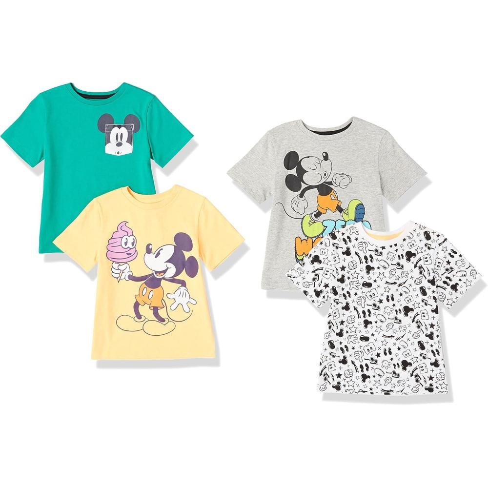 Amazon Essentials Disney | Marvel | Star Wars Boys and Toddlers' Short-Sleeve T-Shirts (Previously Spotted Zebra), Multipacks(Green/Orange/Yellow/Mickey Print)