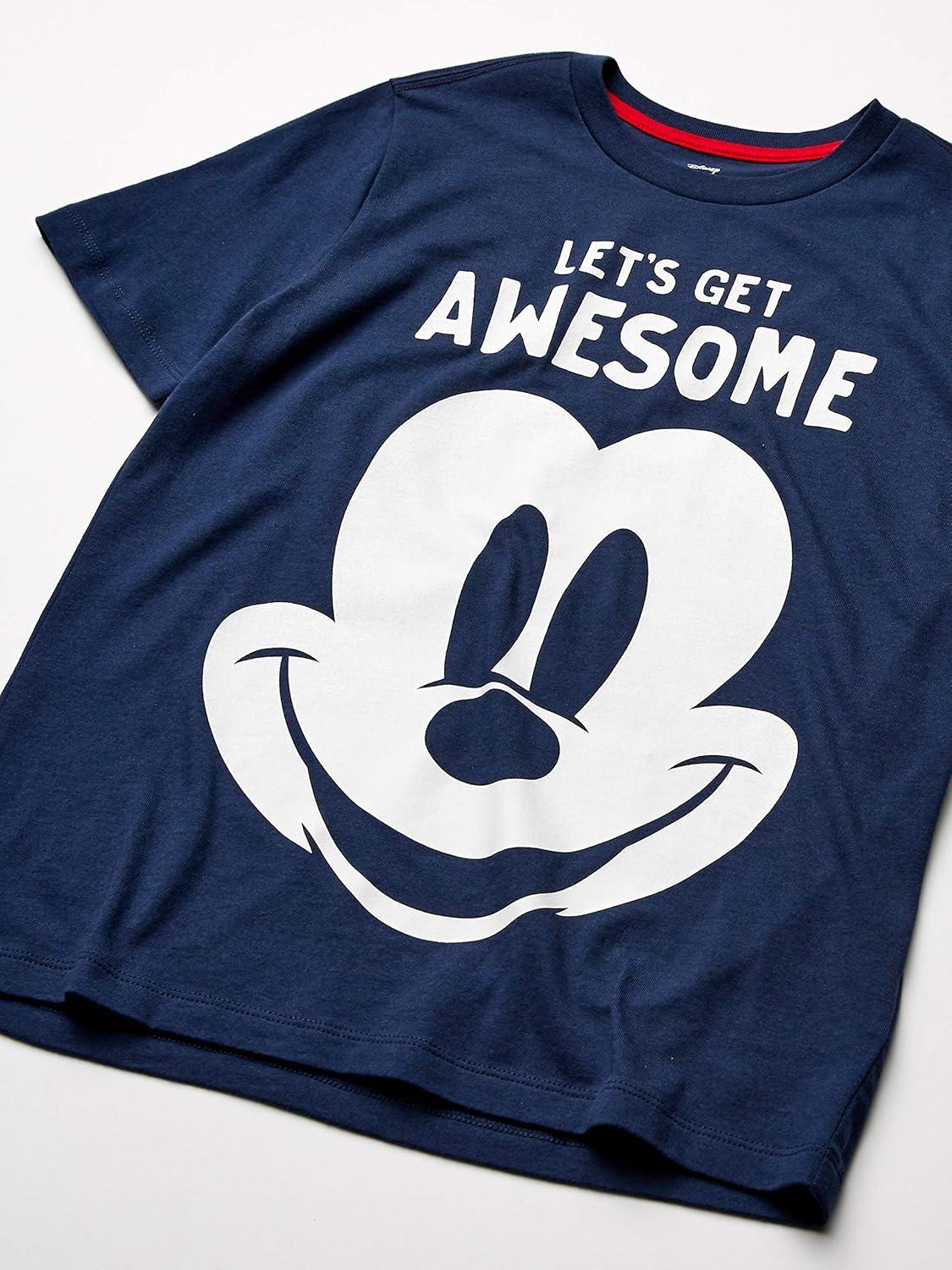 Amazon Essentials Disney | Marvel | Star Wars Boys and Toddlers’ Short-Sleeve T-Shirts (Previously Spotted Zebra), Multipacks(Grey/Navy/Blue/Mickey Awesome)