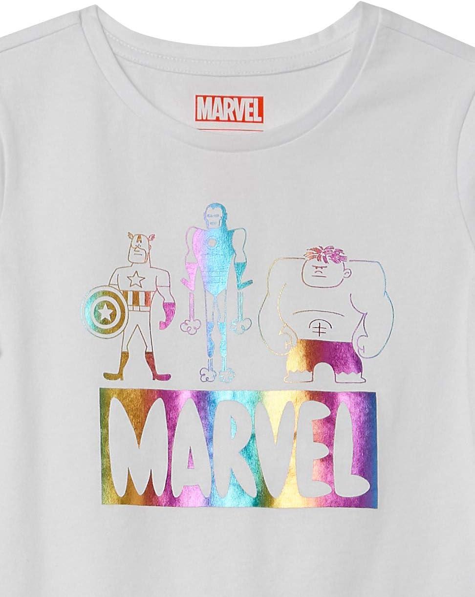Amazon Essentials Disney | Marvel | Star Wars | Frozen | Princess Girls and Toddlers' Short-Sleeve T-Shirts, Multipacks(Black/Blue/Grey/White Marvel Super Hero)