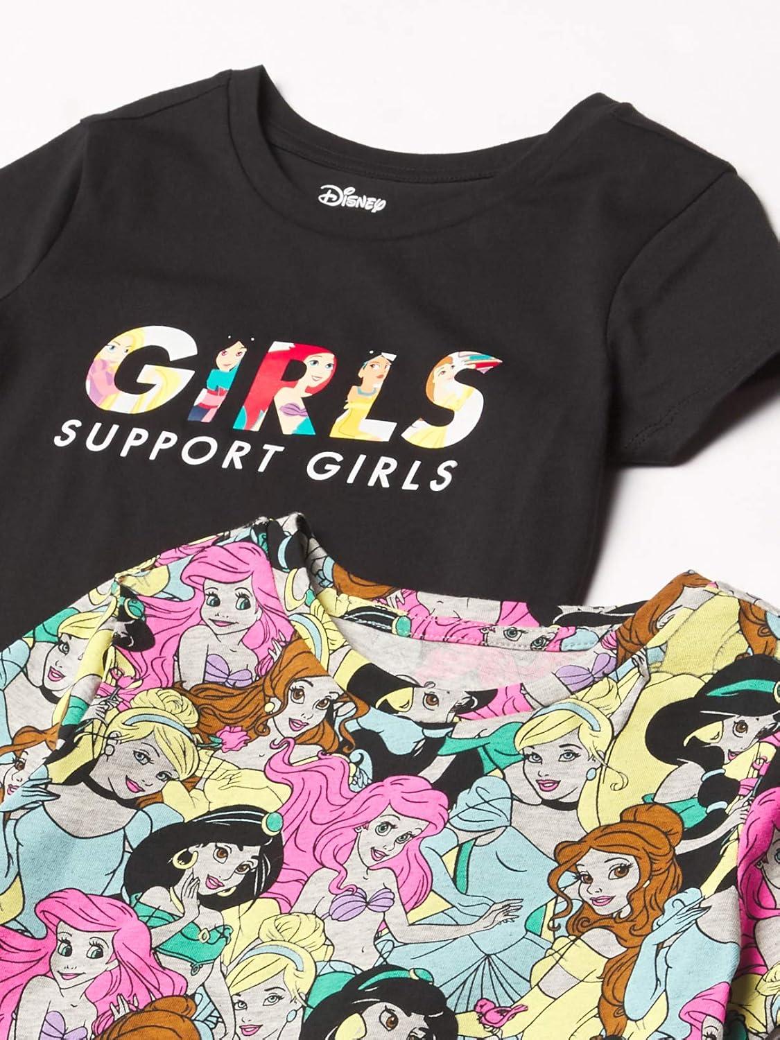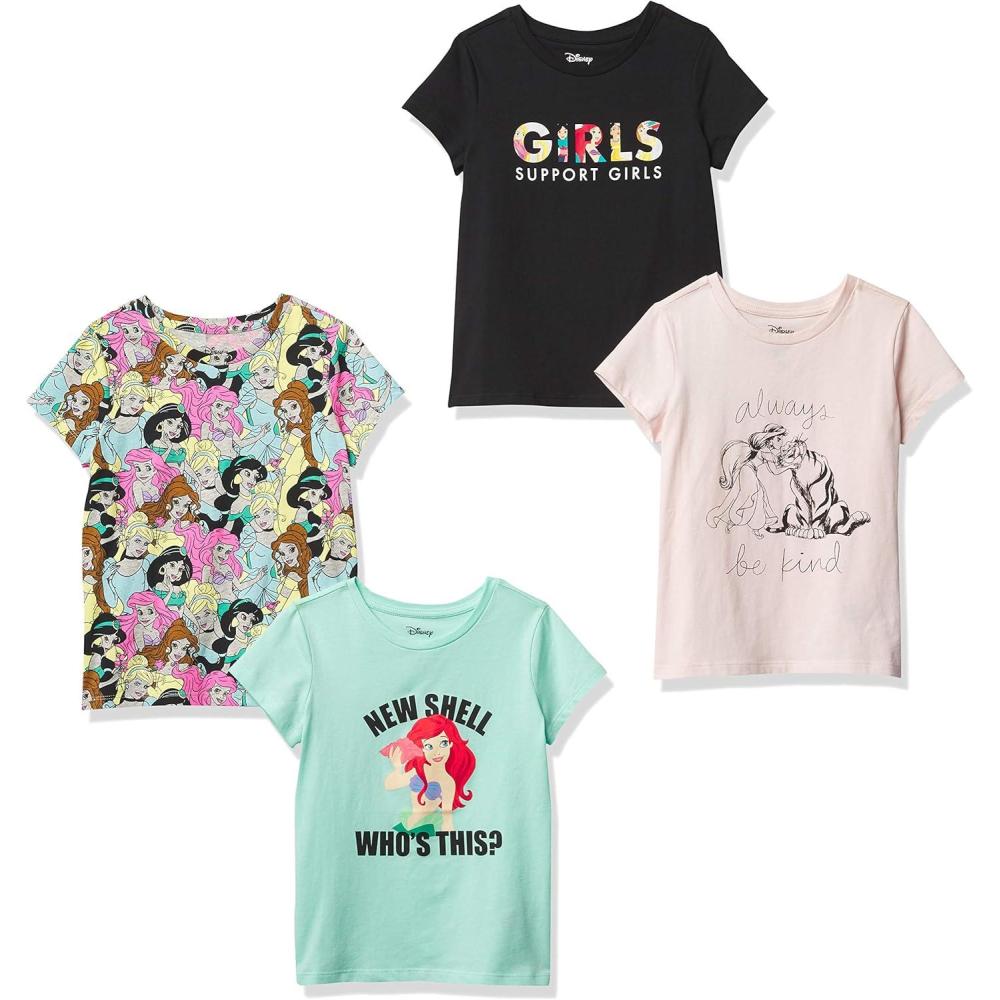 Amazon Essentials Disney | Marvel | Star Wars | Frozen | Princess Girls and Toddlers' Short-Sleeve T-Shirts, Multipacks(Black/Green/Pink/Princess Power)