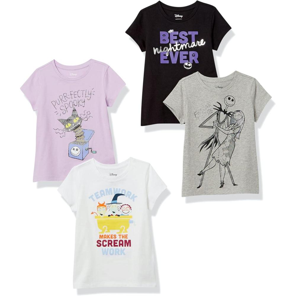 Amazon Essentials Disney | Marvel | Star Wars | Frozen | Princess Girls and Toddlers’ Short-Sleeve T-Shirts, Multipacks(Black/Grey/White/Nightmare Spooky)