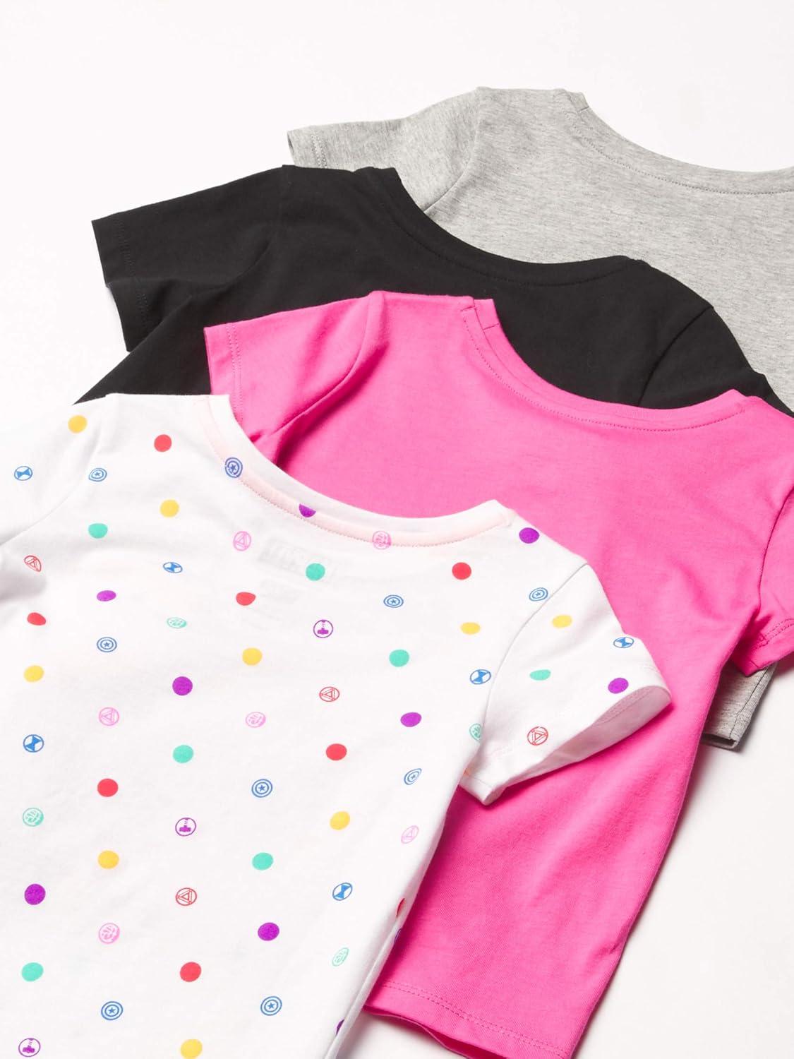 Amazon Essentials Disney | Marvel | Star Wars | Frozen | Princess Girls and Toddlers' Short-Sleeve T-Shirts, Multipacks(Marvel Super Hero Print)