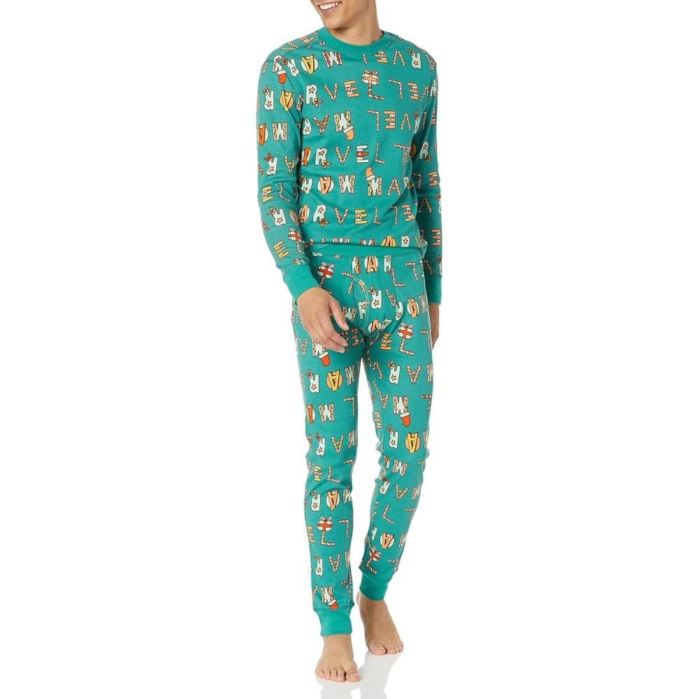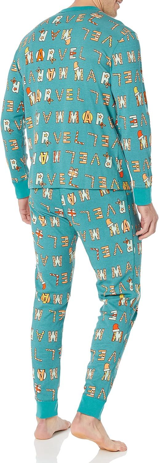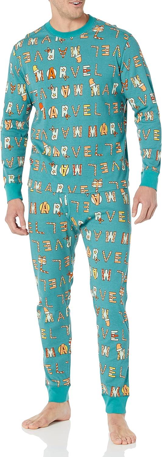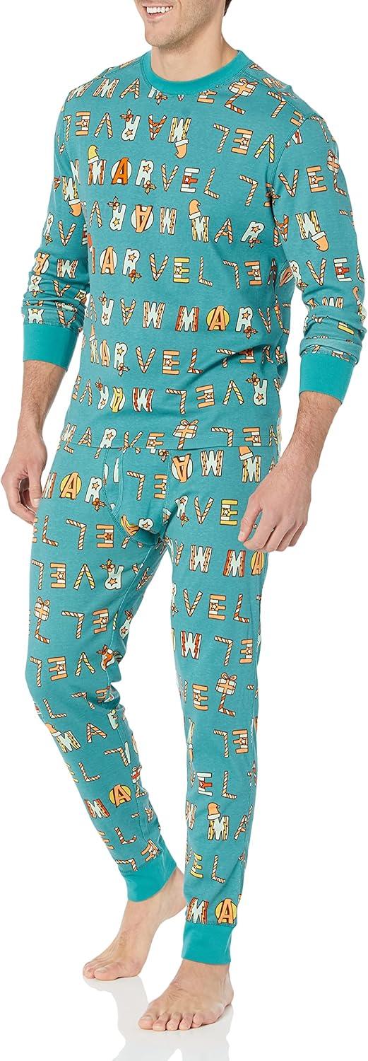 Amazon Essentials Disney | Marvel | Star Wars Men’s Snug-Fit Pajama Sleep Sets(Festive Marvel)