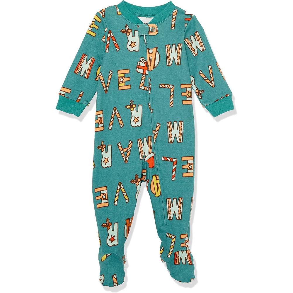 Amazon Essentials Disney | Marvel | Star Wars Unisex Babies’ and Toddlers’ Snug-Fit Cotton Footed Pajamas, Multipacks(Nightmare Santa Jack – Footed Sleeper)