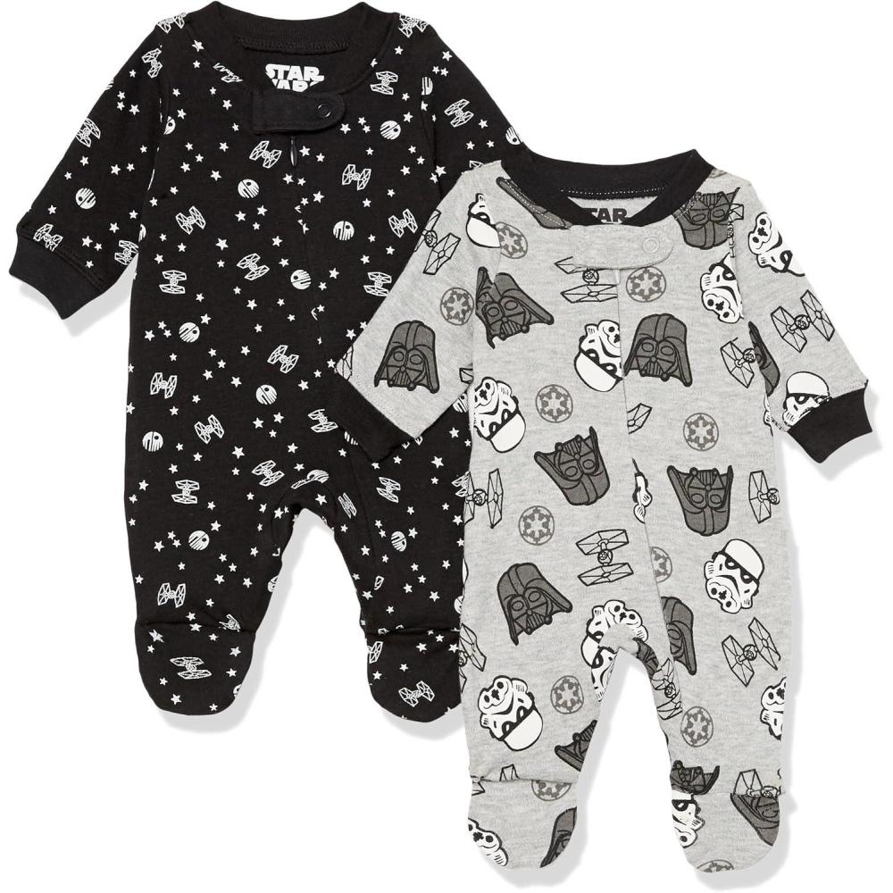 Amazon Essentials Disney | Marvel | Star Wars Unisex Babies' and Toddlers' Snug-Fit Cotton Footed Pajamas, Multipacks(Star Wars Tiny Trooper)