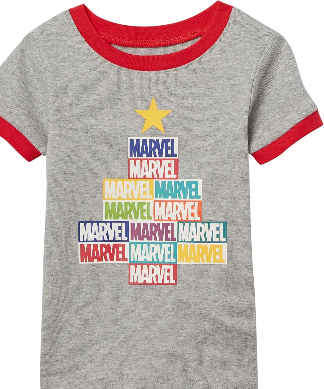 Amazon Essentials Disney | Marvel | Star Wars Unisex Kids' Snug-Fit Cotton Pajamas(Marvel Holiday Bricks)