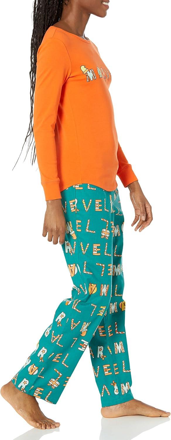 Amazon Essentials Disney | Marvel | Star Wars Women’s Flannel Pajama Sleep Sets(Festive Marvel)