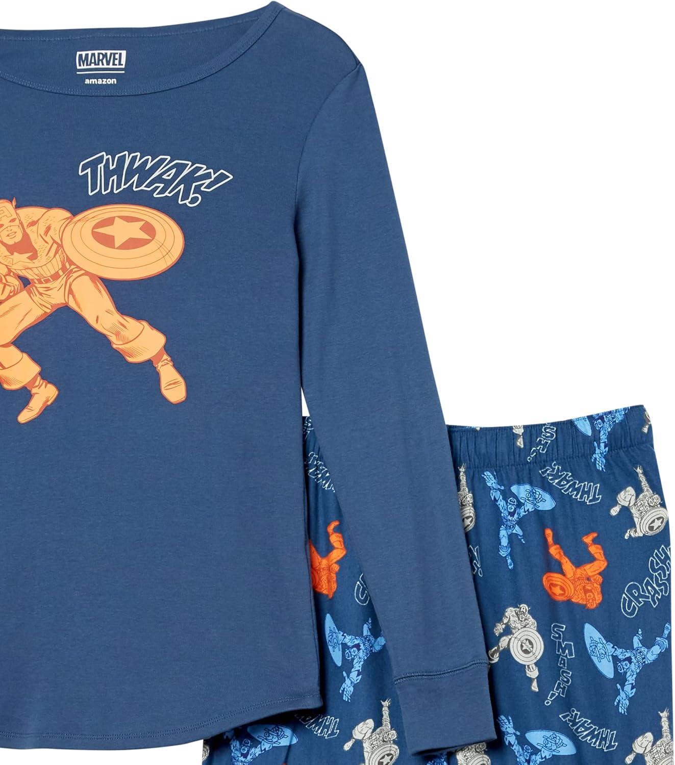 Amazon Essentials Disney | Marvel | Star Wars Women’s Flannel Pajama Sleep Sets(Marvel Captain America)