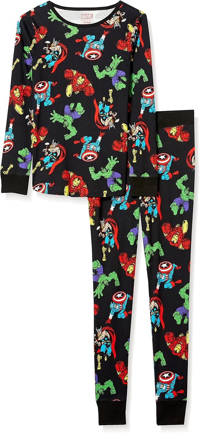 Amazon Essentials Disney | Marvel | Star Wars Women’s Snug-Fit Cotton Pajama Sleepwear Sets(Festive Marvel)