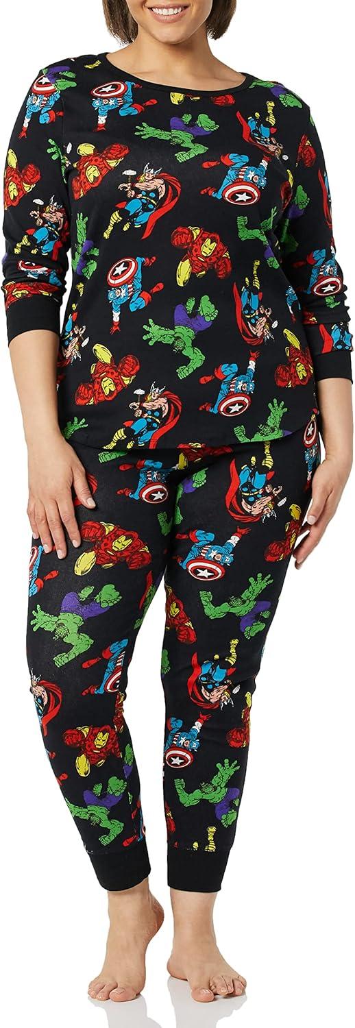 Amazon Essentials Disney | Marvel | Star Wars Women's Snug-Fit Cotton Pajama Sleepwear Sets(Marvel Avengers)