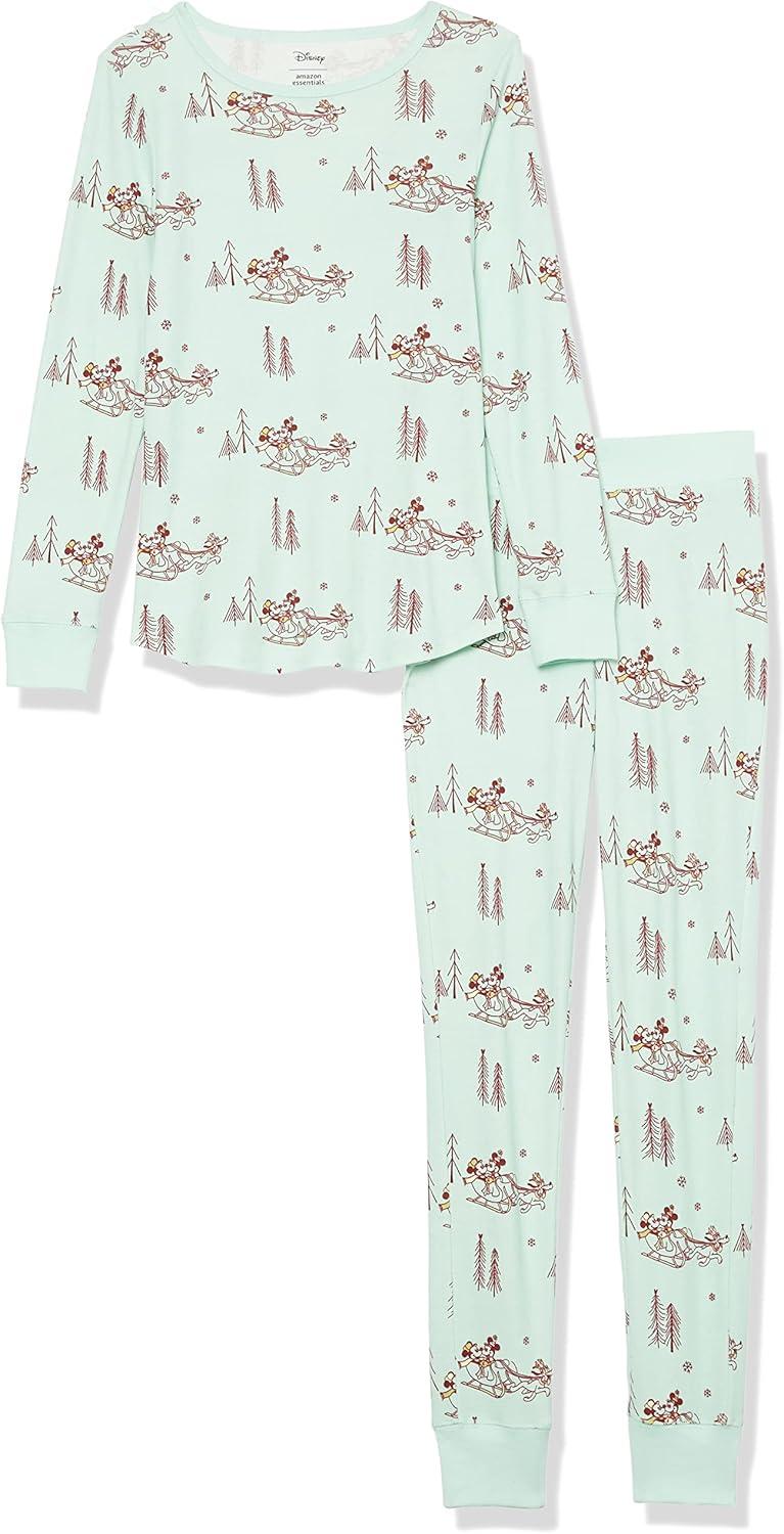 Amazon Essentials Disney | Marvel | Star Wars Women's Snug-Fit Cotton Pajama Sleepwear Sets(Mickey Winter - Womens Snug-fit)