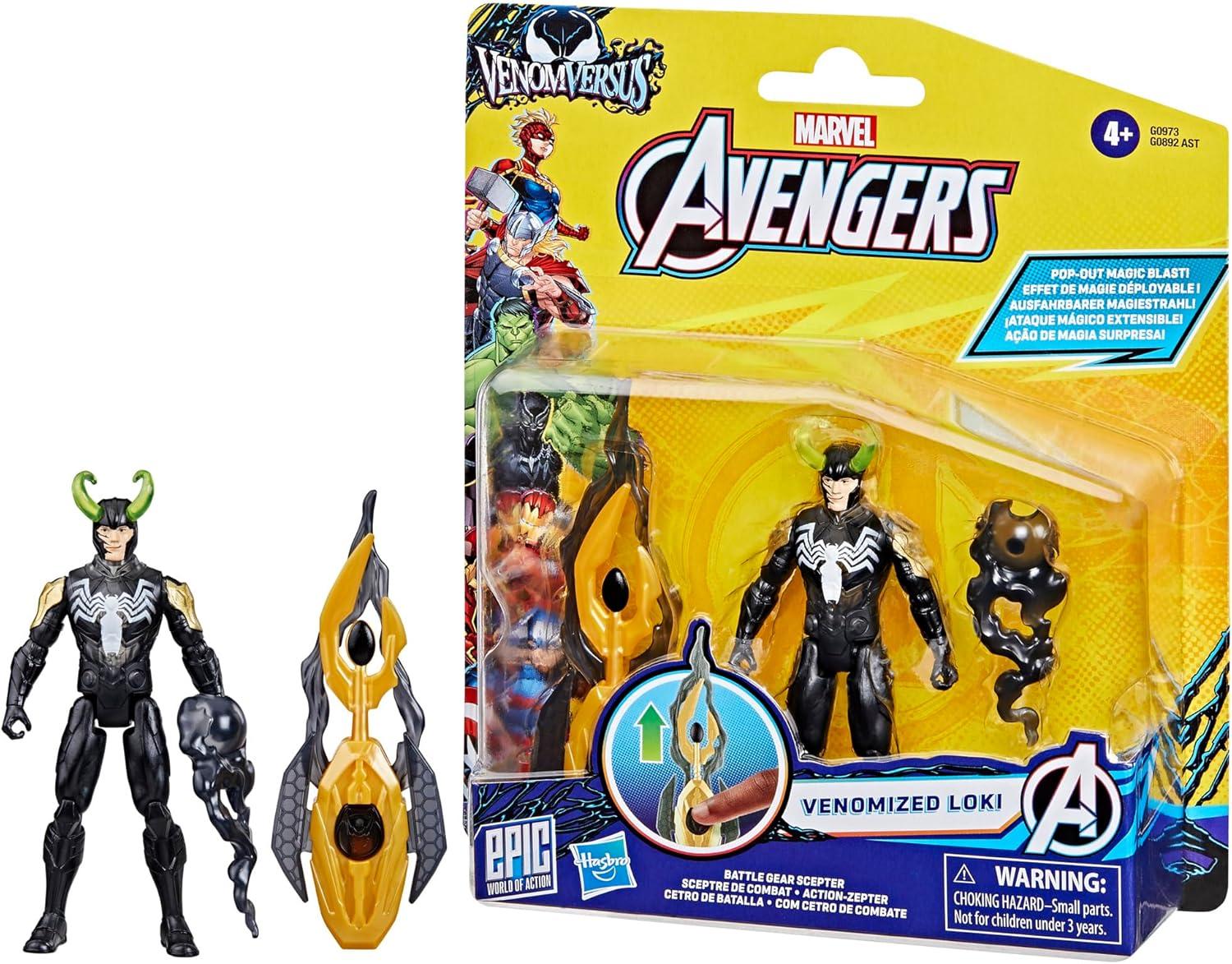 Kids can imagine powering up with Venomized battle gear to face off against the anti-venom Super Heroes! This Venomized Loki Marvel action figure is a part of Hasbro’s exclusive Epic World of Action series and features Venom-inspired design & deco, as well as poseable limbs. Avengers VenomVersus toys also include Venomized accessories for symbiote-powered action and adventure. This 4-inch-scale (10 cm) figure can't be missed and will be the perfect gift for kids or addition to any collection of Super Hero figures! Look for more Epic World of Action toys for boys and girls to collect, including figures, playsets, and toy vehicles! (Each sold separately. Subject to availability.) Copyright MARVEL. All trademarks and registered trademarks are the property of their respective owners. HASBRO and all related trademarks and logos are trademarks of Hasbro, Inc.