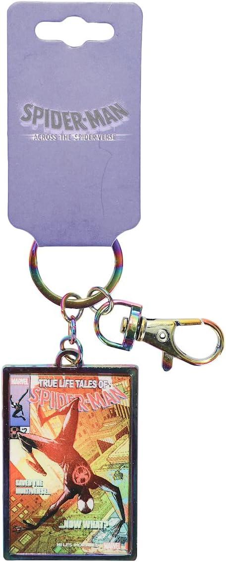 Spider-man fans will love toting around this unique superhero keychain! The Spider-man: Across the Spider-verse keychain connects to your bag or keys with a zinc alloy lobster claw or keyring, while the keychain itself features a digitally printed artwork under glass and bordered by metal. The keychain measures just under one inch tall, and is made of zinc alloy for easy maintenance (just wipe clean!). As an officially licensed Spider-man product, this cool digital art keychain is a must-have for any fan!