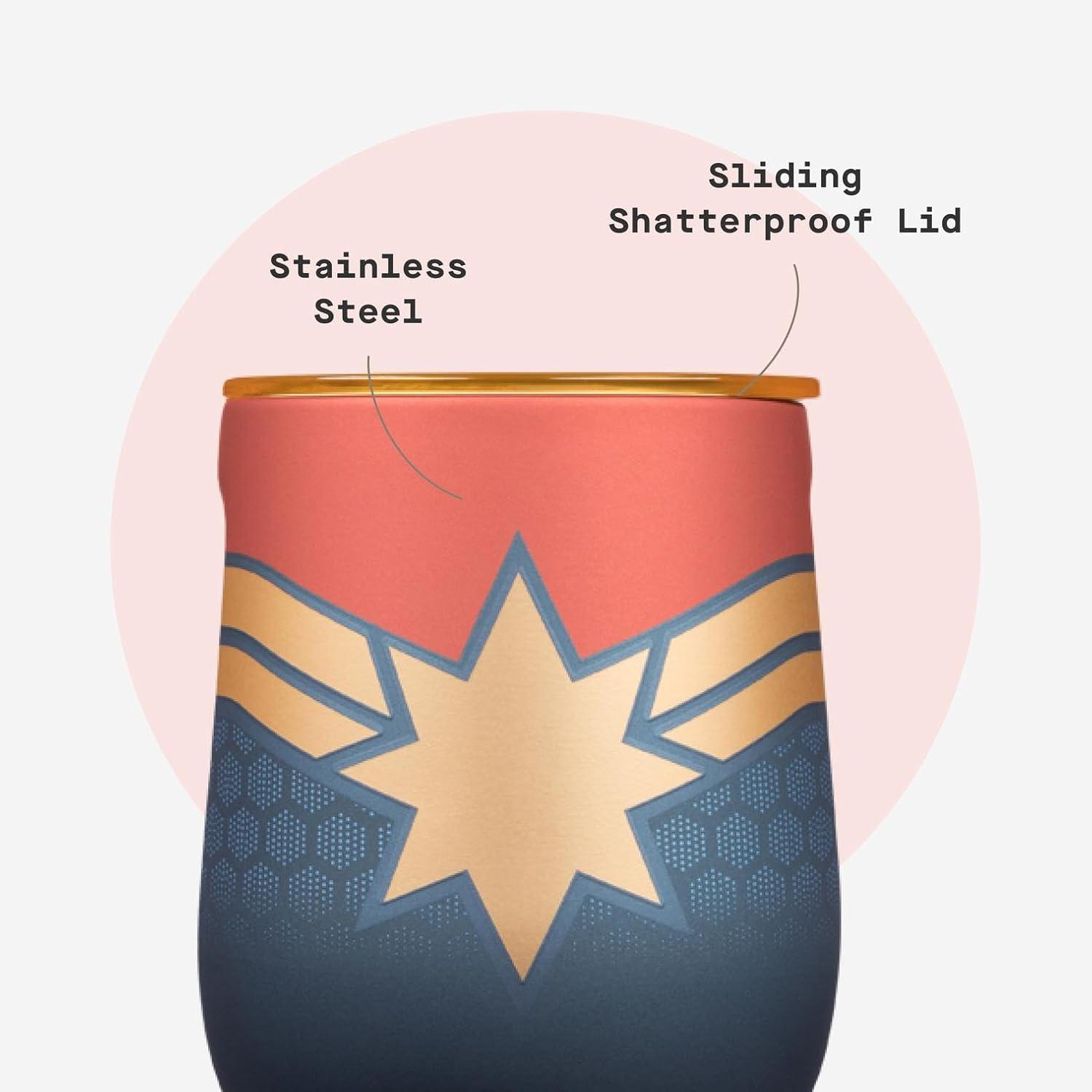 Corkcicle Stemless Insulated Wine Glass Tumbler - Keeps Beverages Cold 6 Hours & Hot 3 Hours - Stainless Steel - Easy-Grip - Summer Drinkware Gift - Keeps Drinks Ice Cold - 12 oz - Spider-Man(Captain Marvel)