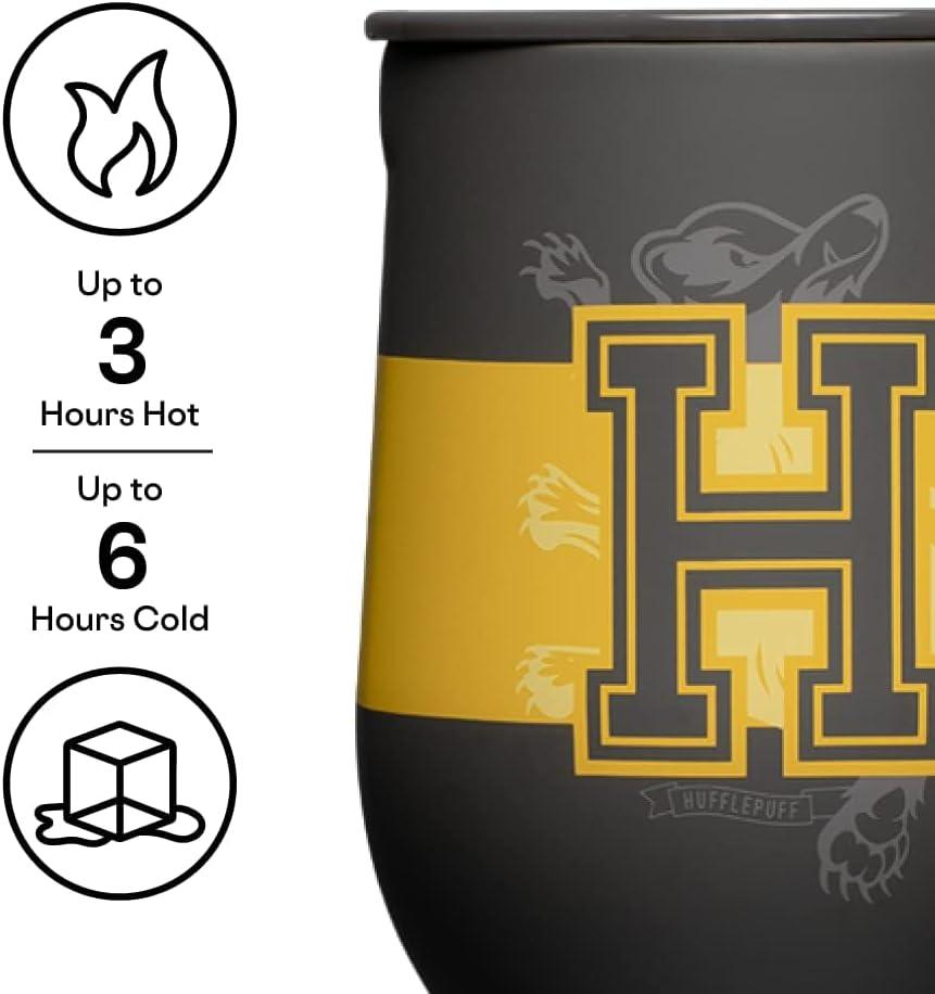 Corkcicle Stemless Insulated Wine Glass Tumbler - Keeps Beverages Cold 6 Hours & Hot 3 Hours - Stainless Steel - Easy-Grip - Summer Drinkware Gift - Keeps Drinks Ice Cold - 12 oz - Spider-Man(Harry Potter Hufflepuff)