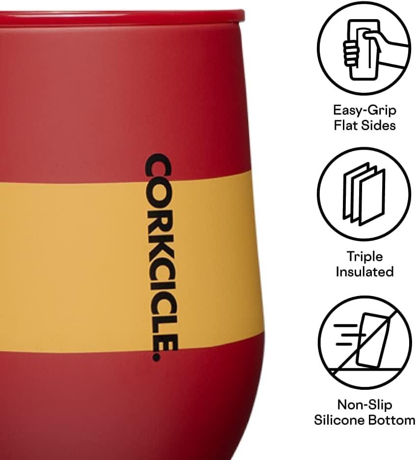 imageCorkcicle Stemless Insulated Wine Glass Tumbler  Keeps Beverages Cold 6 Hours ampamp Hot 3 Hours  Stainless Steel  EasyGrip  Summer Drinkware Gift  Keeps Drinks Ice Cold  12 oz  SpiderManHarry Potter Gryffindor