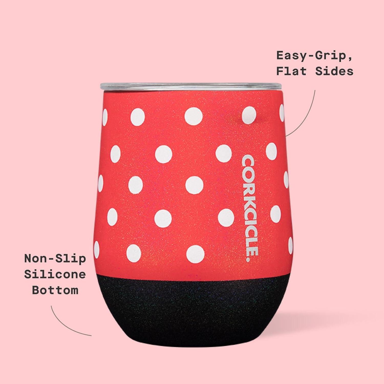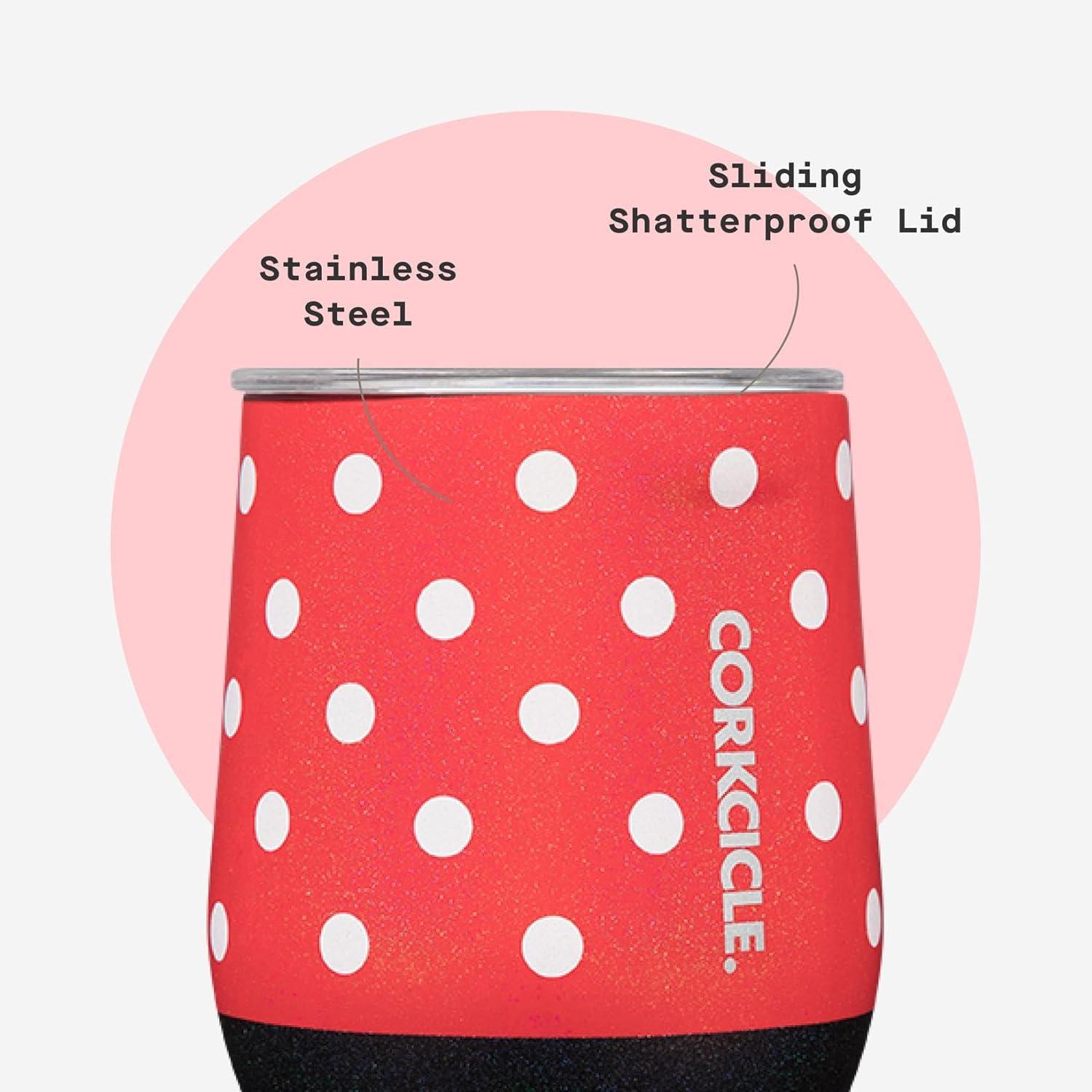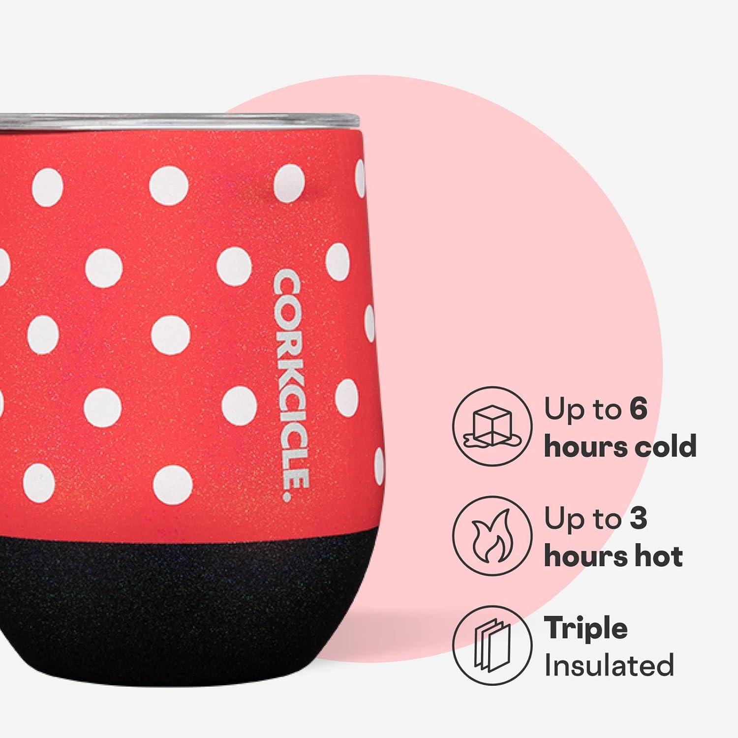 imageCorkcicle Stemless Insulated Wine Glass Tumbler  Keeps Beverages Cold 6 Hours ampamp Hot 3 Hours  Stainless Steel  EasyGrip  Summer Drinkware Gift  Keeps Drinks Ice Cold  12 oz  SpiderManMinnie Mouse Red Polka Dot