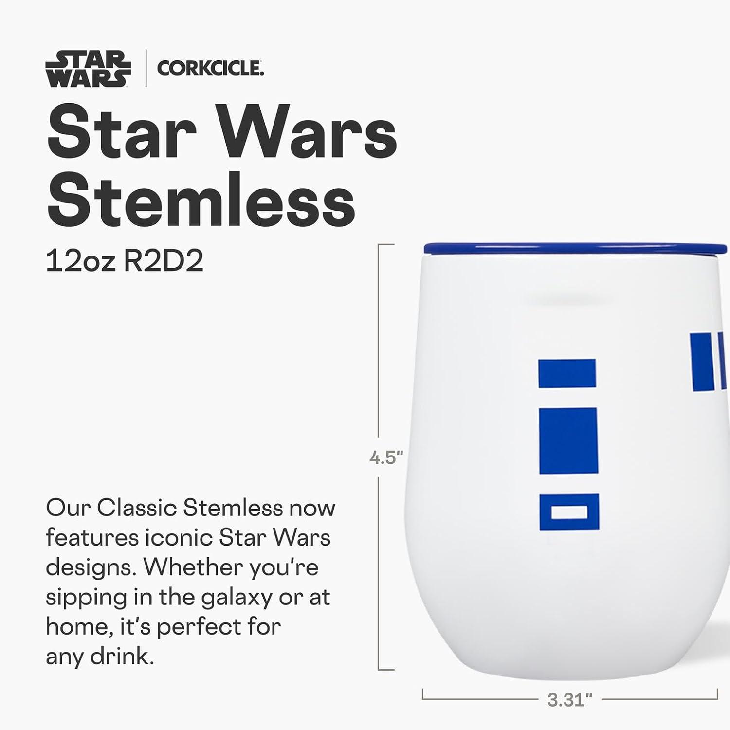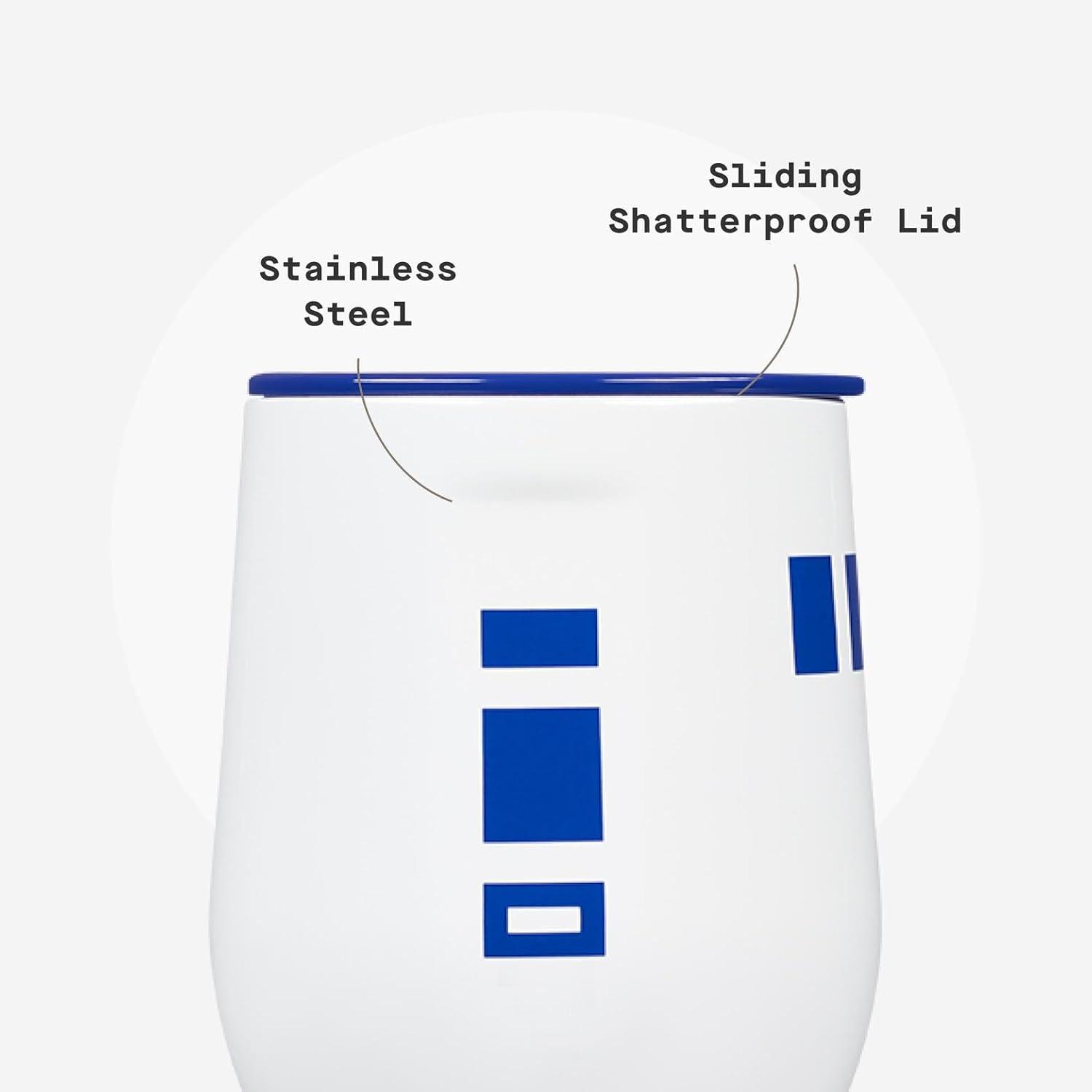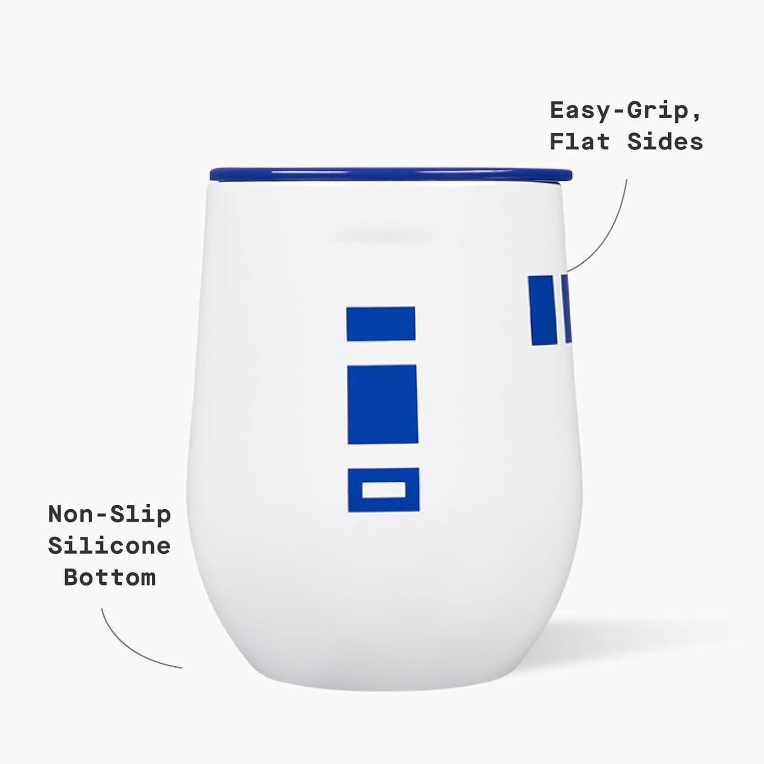 Corkcicle Stemless Insulated Wine Glass Tumbler - Keeps Beverages Cold 6 Hours & Hot 3 Hours - Stainless Steel - Easy-Grip - Summer Drinkware Gift - Keeps Drinks Ice Cold - 12 oz - Spider-Man(R2-D2)