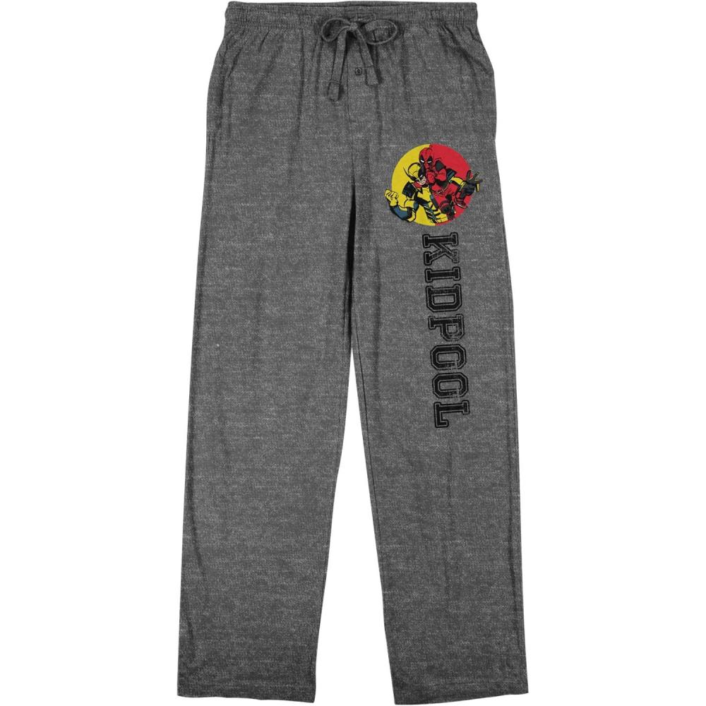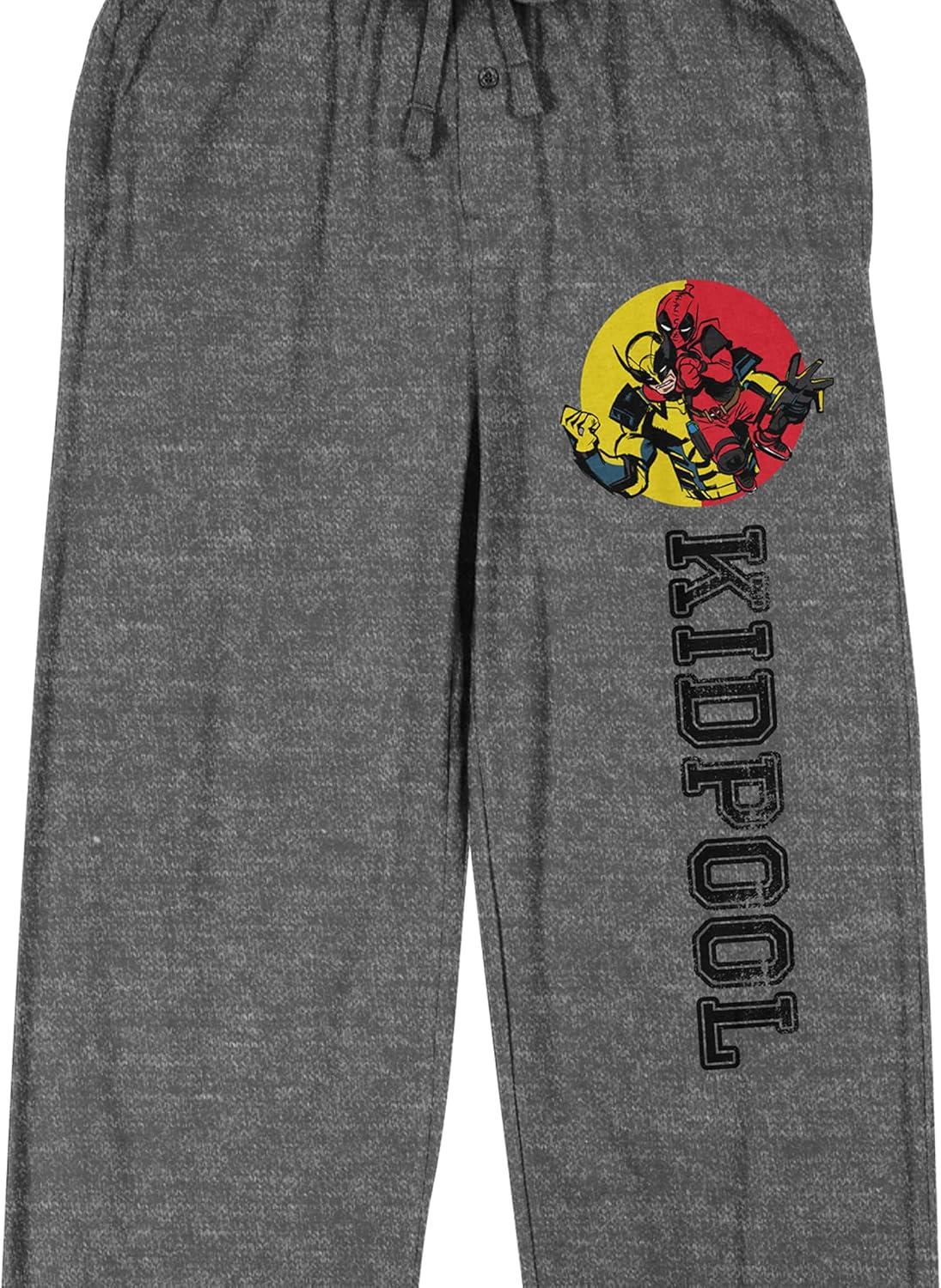 Lounge around with your favorite superheroes and these men's sleep pants! The officially licensed Deadpool 3 pajama pants feature a big, colorful graphic of Deadpool and Wolverine as kids – “Kidpool” – an eye-catching image that has been professionally printed for long-lasting print quality. The pants' heather gray background color makes them a versatile addition to your wardrobe, while the elastic waistband with drawstring ensures a comfortable and adjustable fit each and every wear. Crafted from a high-quality blend of 54% recycled cotton, 40% recycled polyester, and 6% recycled viscose, these sleep pants offer a soft and cozy feel against your skin. And when it's time for a refresh, simply machine wash them for hassle-free care!