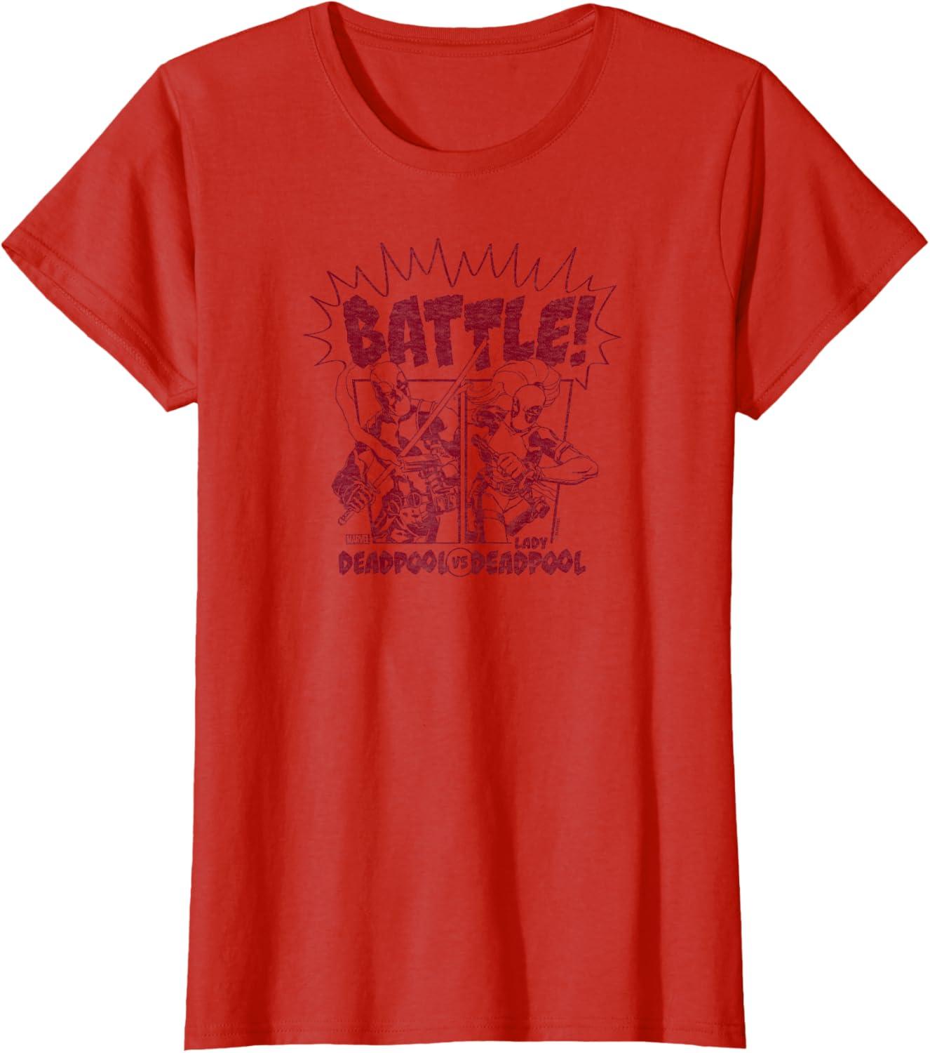 Deadpool – Deadpool vs. Lady Deadpool T-Shirt(Red)