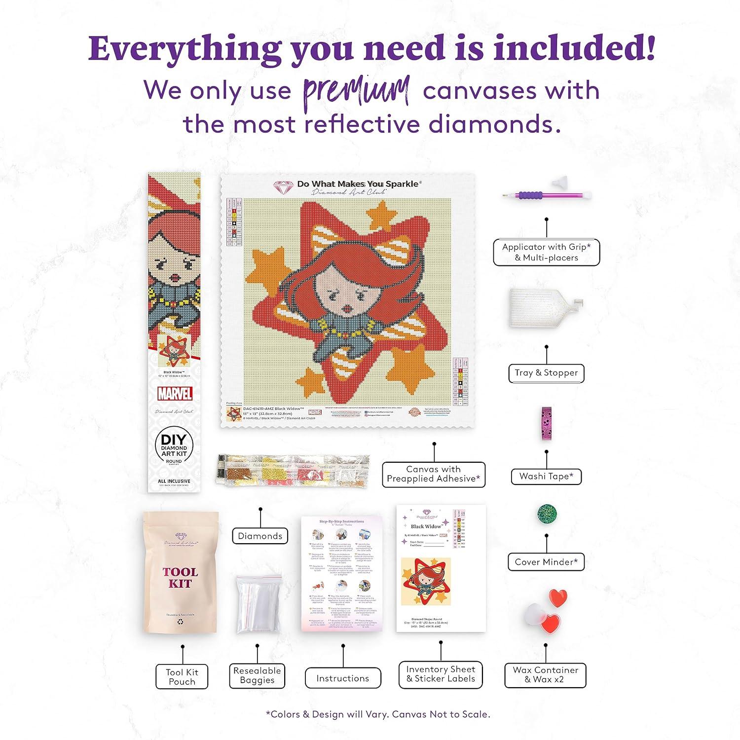 DIAMOND ART CLUB Deadpool Marvel Diamond Painting Kit, Fun DIY Crafts for Adults and All Ages, Round Diamond Art Canvas for Beginners, 13″ x 18″ (32.8 x 46 cm)(Black Widow)
