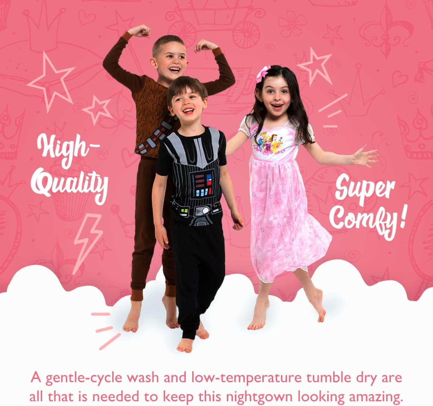 This officially licensed Disney product is made with high-quality materials and safety and comfort in mind. To ensure maximum comfort and safety, please choose the right size for your child to avoid clothing that is too long or too loose. These pajamas are manufactured in accordance with all clothing safety standards and are flame-resistant. Let your child put on these fun pajamas and live out their adventures while they sleep or play.