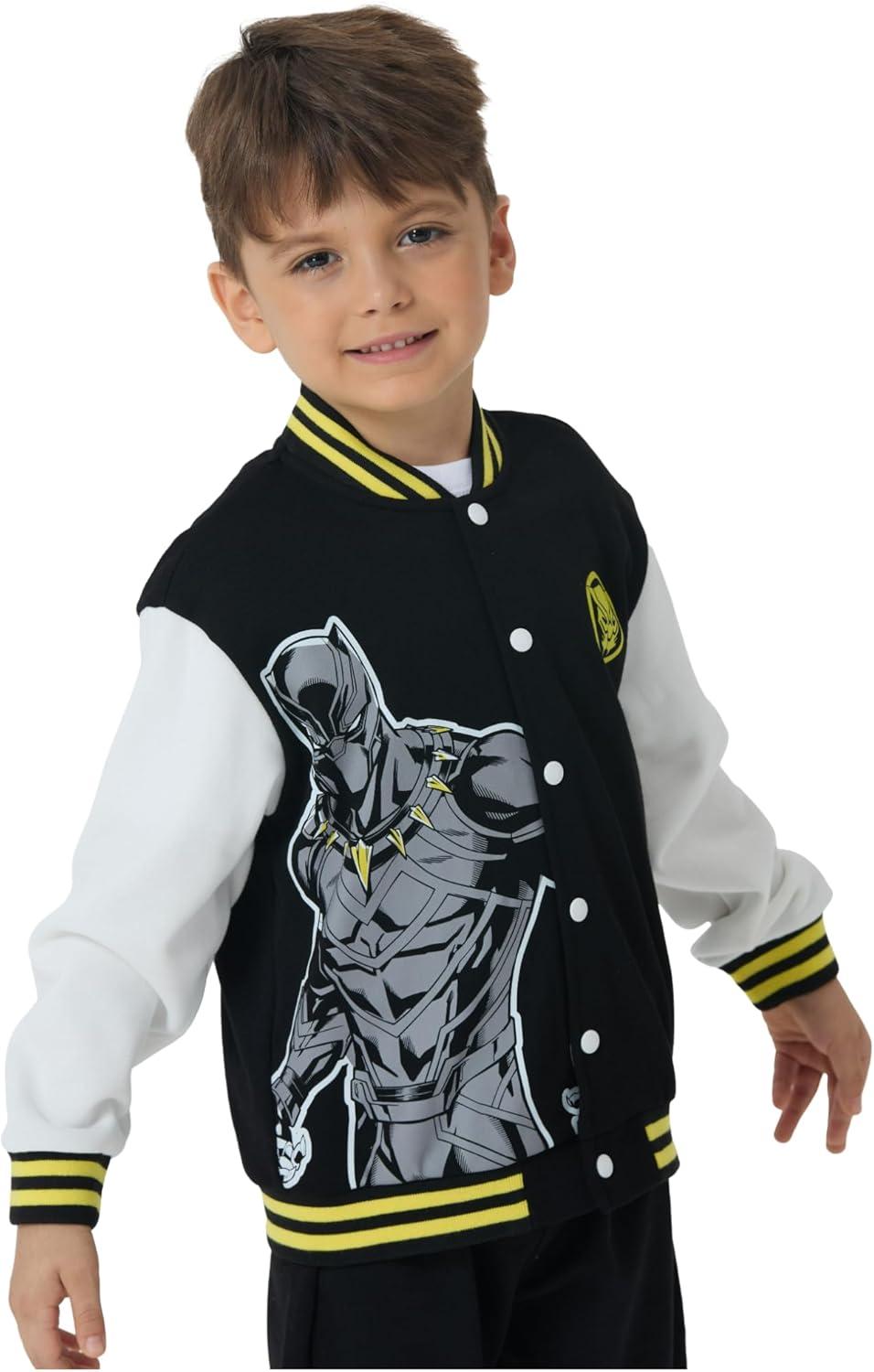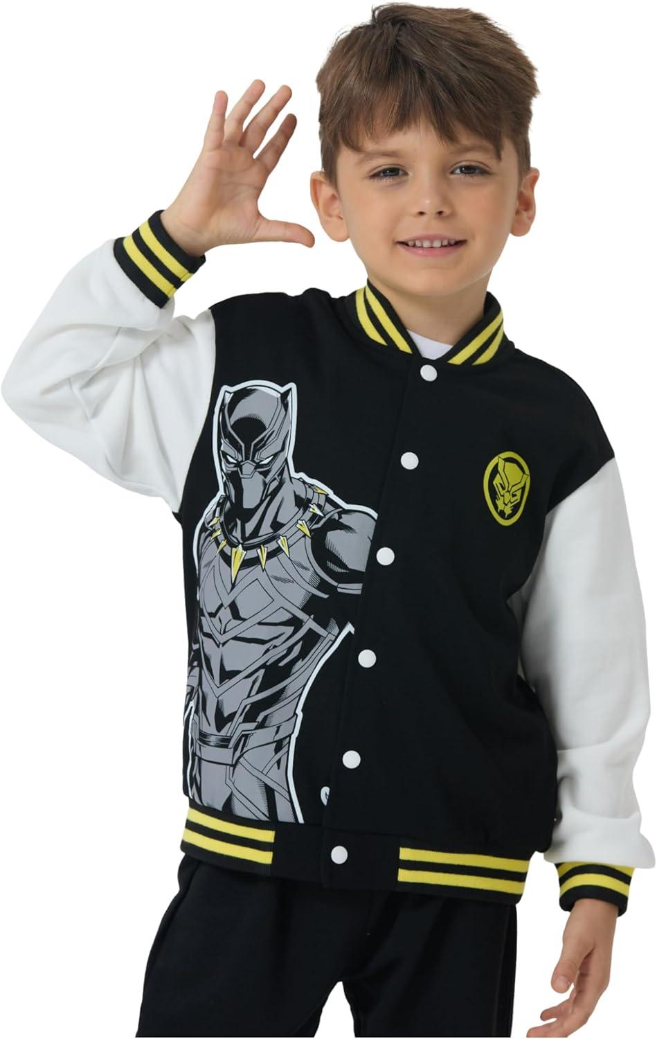 Disney Marvel Spider Man Bomber Jacket Toy Story Cars Mcqueen Varsity Cardigan Lightweight Coat Snap Button Sweatshirts 2-13Y(Avengers Black Panther-black)