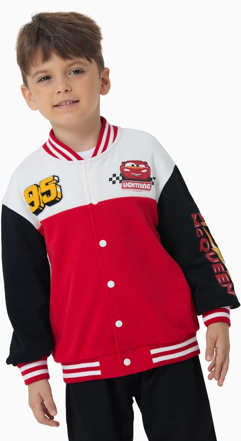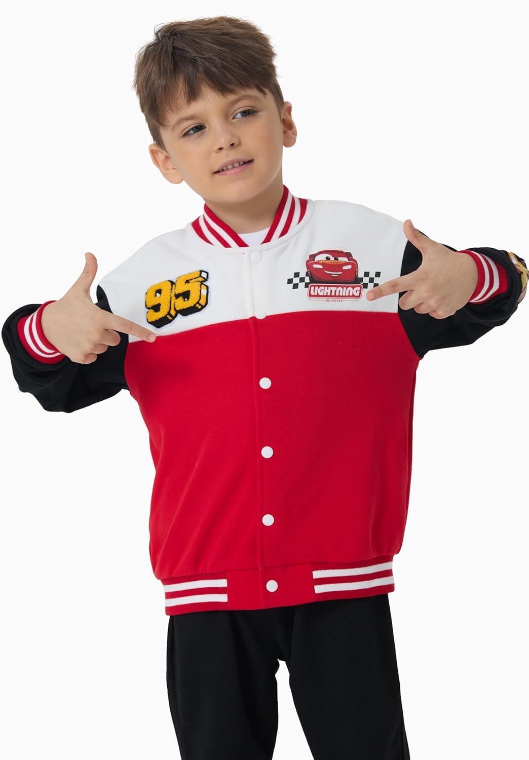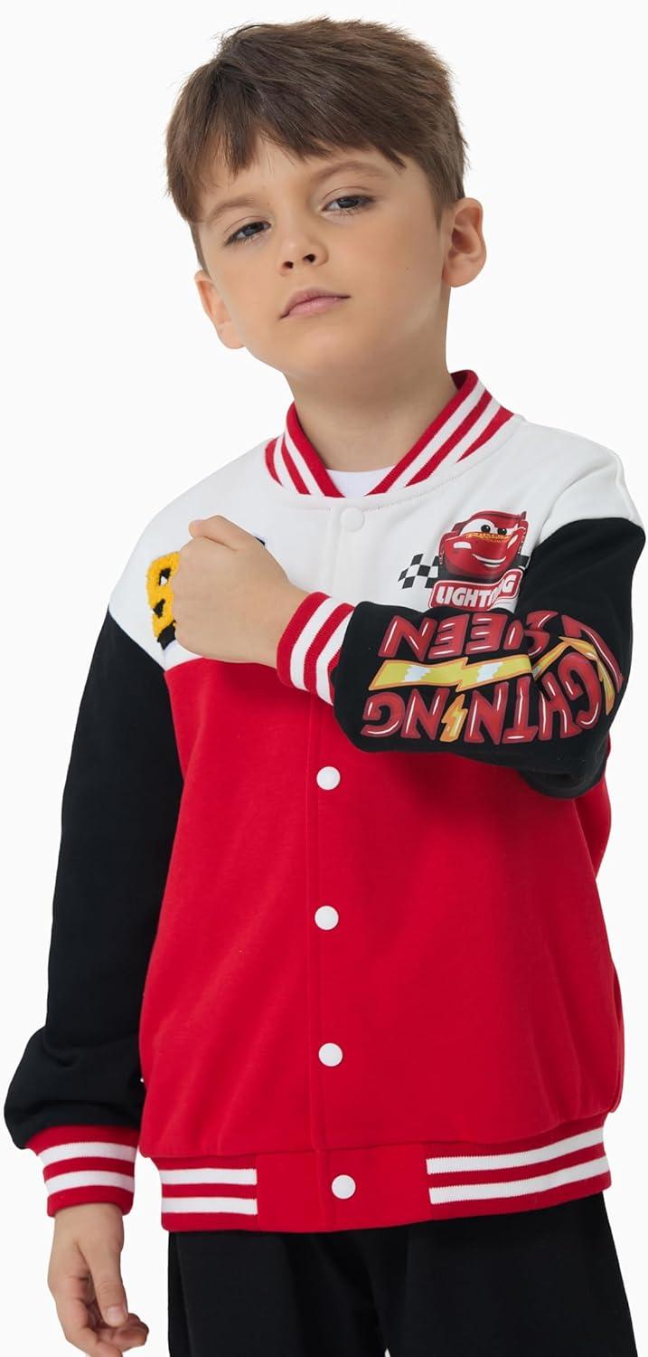 Disney Marvel Spider Man Bomber Jacket Toy Story Cars Mcqueen Varsity Cardigan Lightweight Coat Snap Button Sweatshirts 2-13Y(Cars Lightning Mcqueen-red)