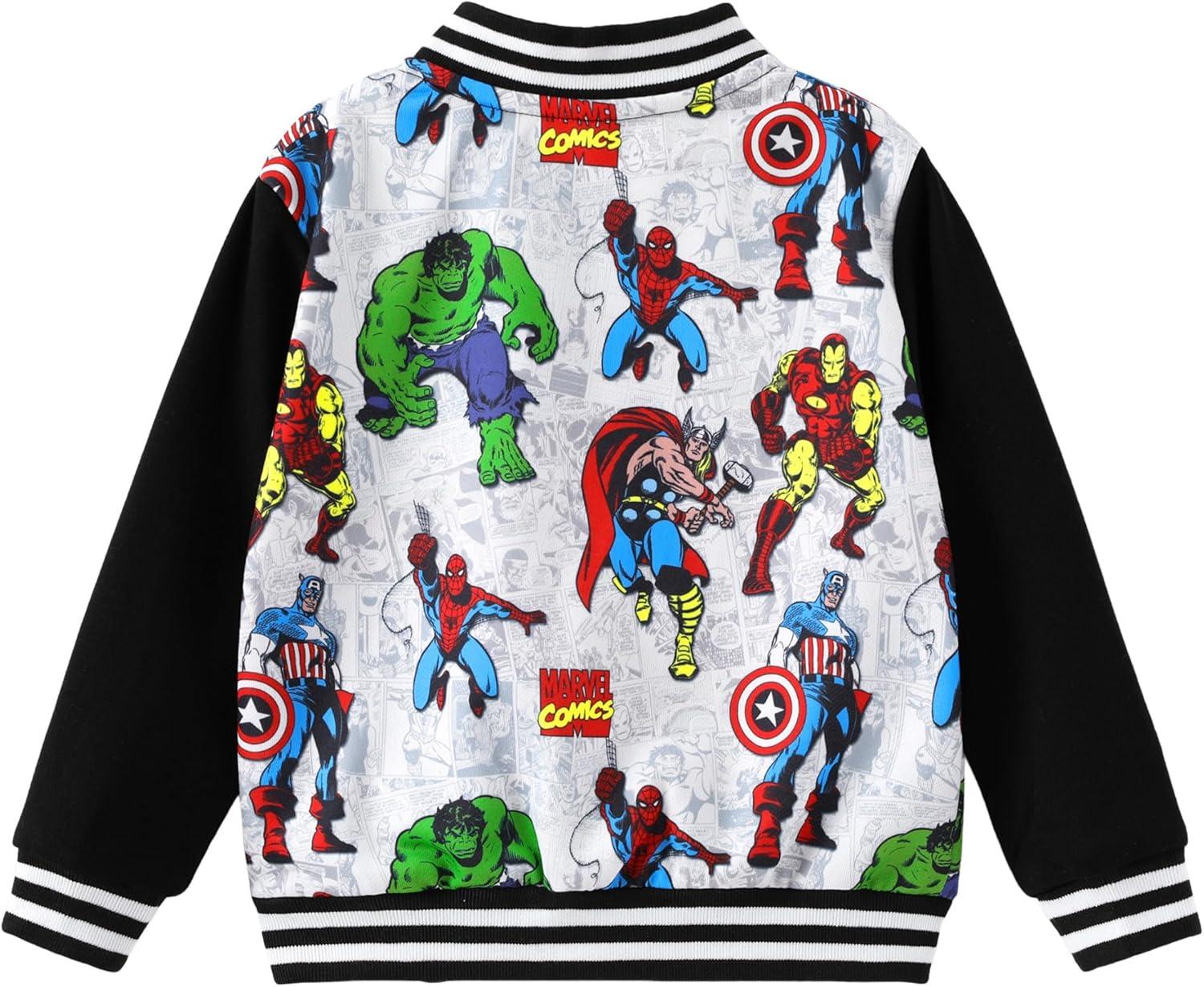 Disney Marvel Spider Man Bomber Jacket Toy Story Cars Mcqueen Varsity Cardigan Lightweight Coat Snap Button Sweatshirts 2-13Y(Marvel Avengers-black)