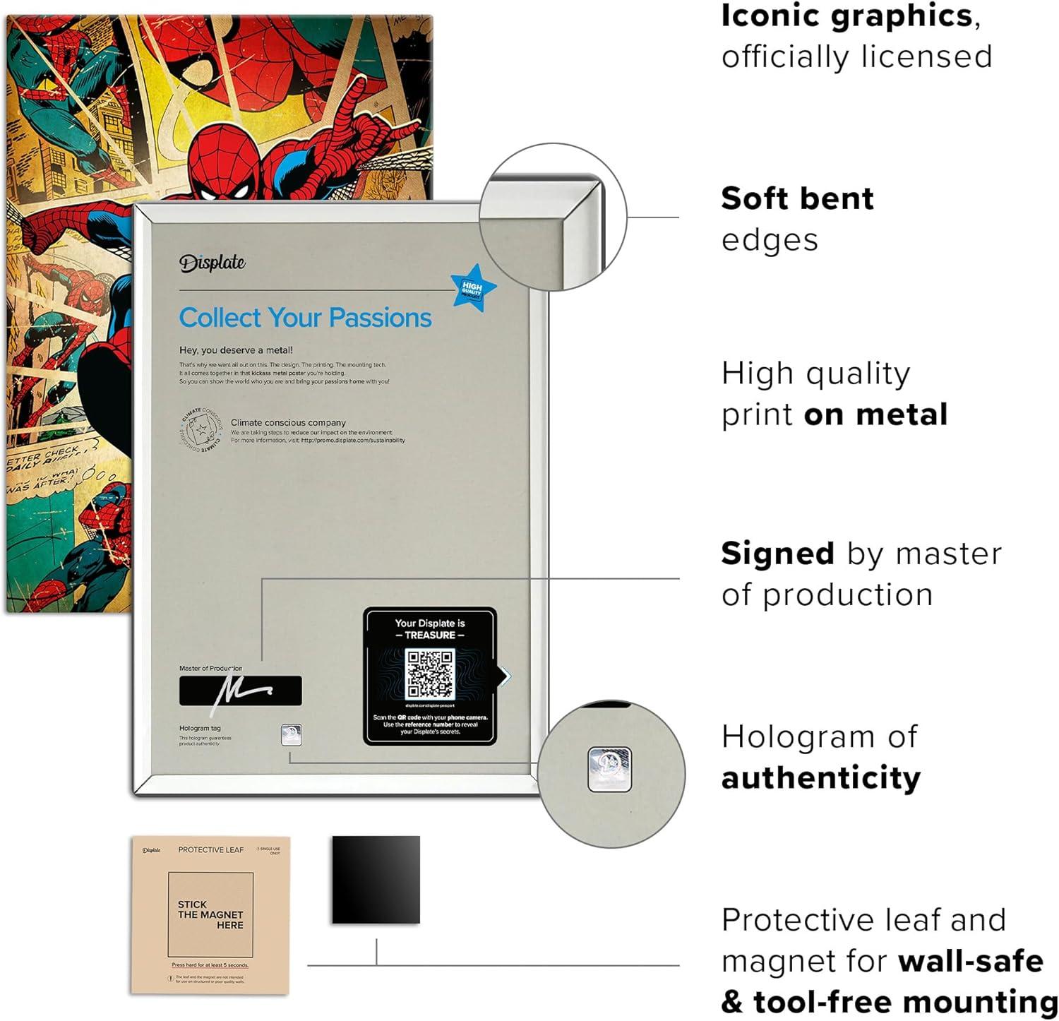 Displate Metal Poster Spider-Man – Marvel Silver Age – Easy Magnetic Mounting – Collectible Superhero Gifts for Comics Fans – Wall Art Room Decor Bedroom Posters – 12.6×17.7 in(26.6″L x 18.9″W)