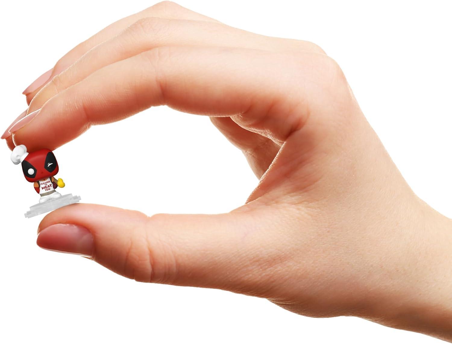 Your favorite merc with a mouth Pops! have been shrunk into Bitty Pops! Expand your Deadpool collection with this assortment of Bitty Pop! figures featuring the most iconic anti-hero around! This 4-pack includes Bitty Pop! Deadpool (Backyard Griller), Bitty Pop! Deadpool (Clown), Bitty Pop! Deadpool (Bedtime), and a mystery Bitty Pop! figure. The possible mystery Bitty Pops! are Rare (1/3) Deadpool (Lederhosen), Rare (1/3) Deadpool (Beauty Pageant), Hyper Rare (1/6) Deadpool (Tourist), and Hyper Rare (1/6) Deadpool (French Maid). Bitty Pops! are packaged in hard acrylic cases with detachable bottom lids. Detachable bottom lids double as acrylic bases, to which the Bitty Pop! figures are adhered. Sort and arrange your Bitty Pops! with the included display case! Acrylic display cases are stackable and hold four Bitty Pop! figures each. Vinyl collectibles are approximately 0.9-inches tall. Four figures per single package purchase. Warning: Choking Hazard. Collectibles are small. Not for children under the age of 3 years old. Item selection is random, as each piece is in blind packaging. We cannot accept requests for specific items. You may receive duplicate figures.