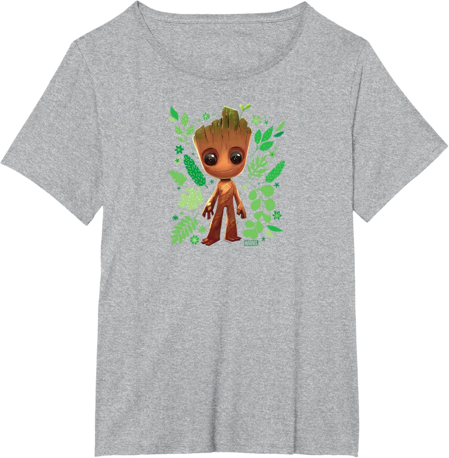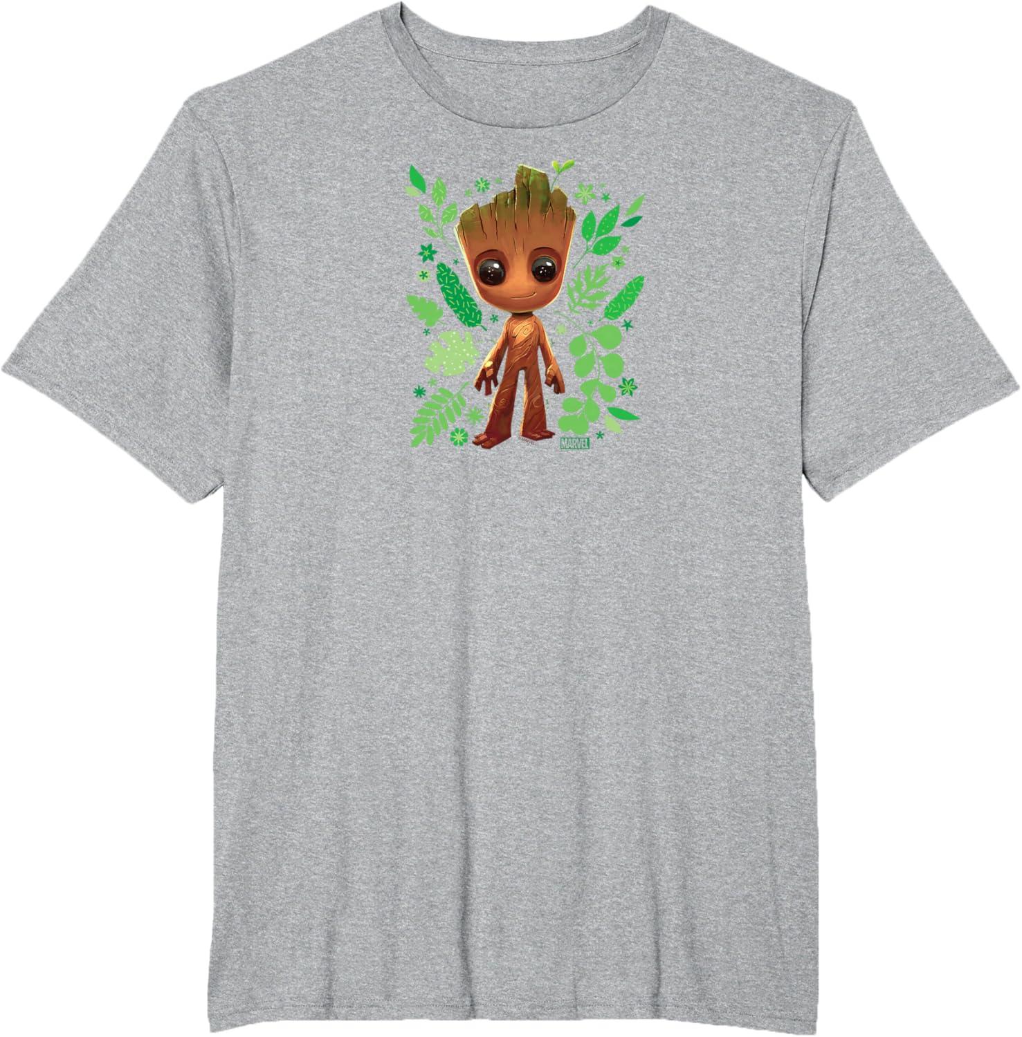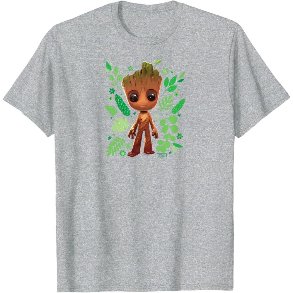 Guardians Of The Galaxy – Baby Groot Leaf T-Shirt(Heather Grey)