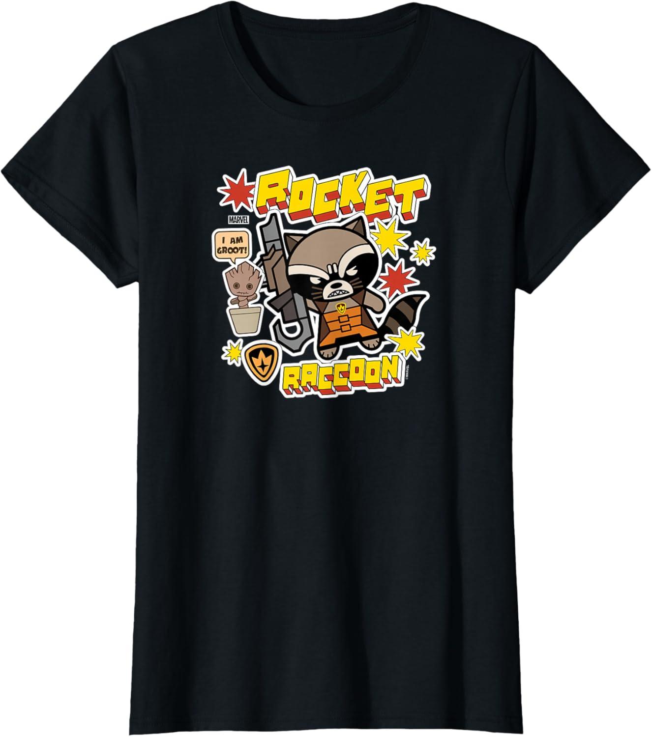 Guardians Of The Galaxy – Rocket Raccoon Stickers T-Shirt(Black)