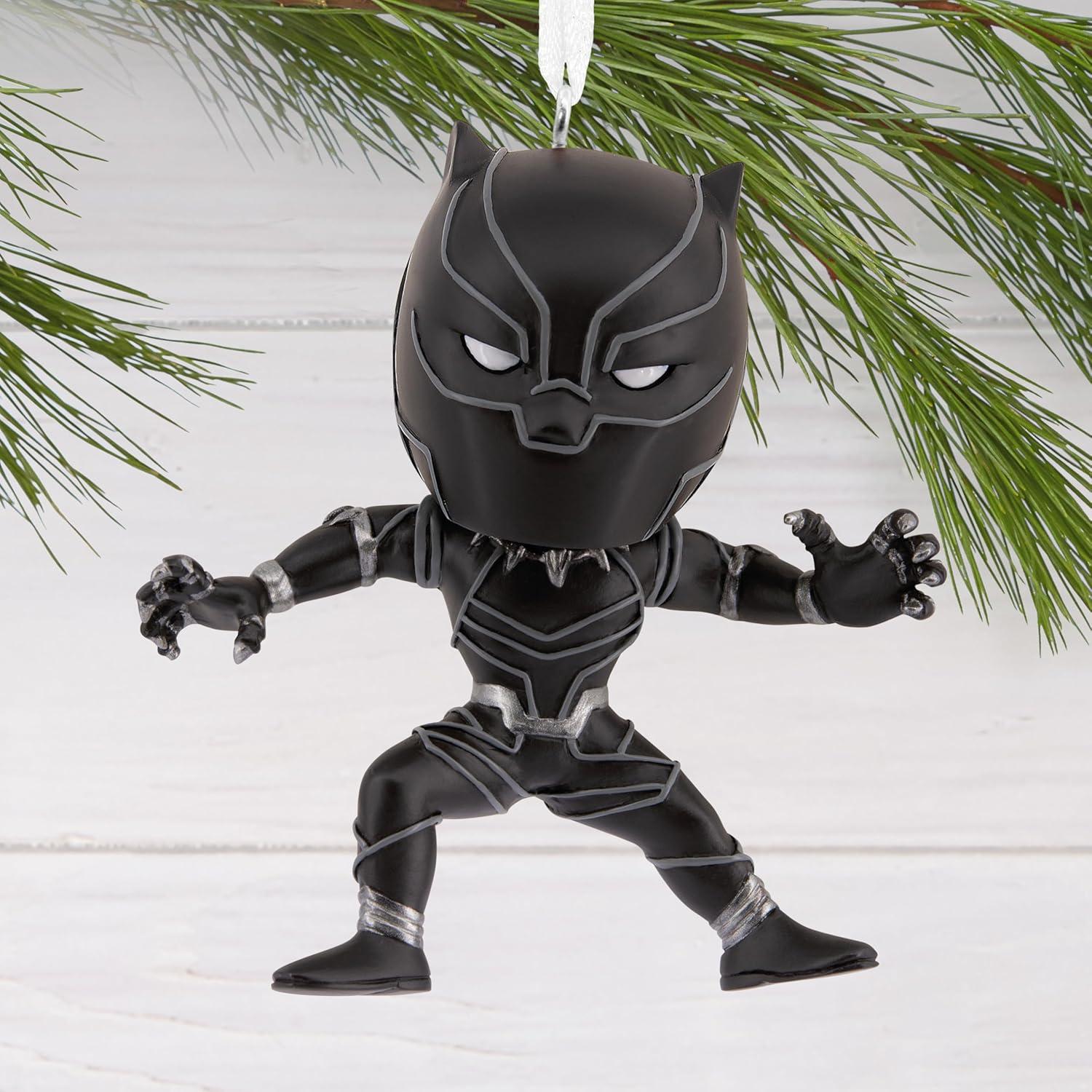 Let the protector of Wakanda guard your tree when you display this fun Black Panther Christmas tree ornament. The stylized design features King T'Challa in his black and silver suit poised to pounce on any threats against holiday cheer. Hallmark Ornaments are a great way to commemorate hobbies, life events and individual interests in entertainment, sports and more. Each festive and collectible ornament is perfect for sharing with family and friends.