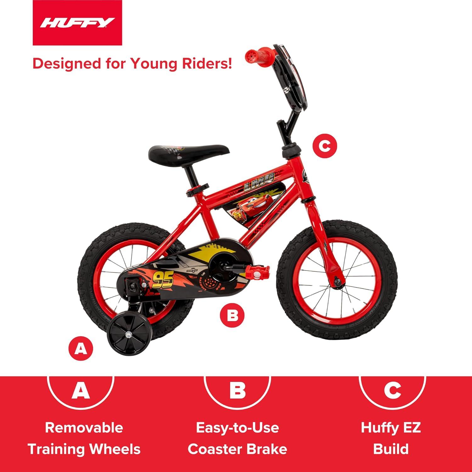 Huffy Disney and Marvel 12/16 Inch Boy's Bike for Kids, Multiple Color Options and Designs Available, Ideal for Ages 3+ Years Old, Removable Training Wheels, Adjustable Seat, Simple Coaster Brake(12" Lightning Mcqueen | Red)