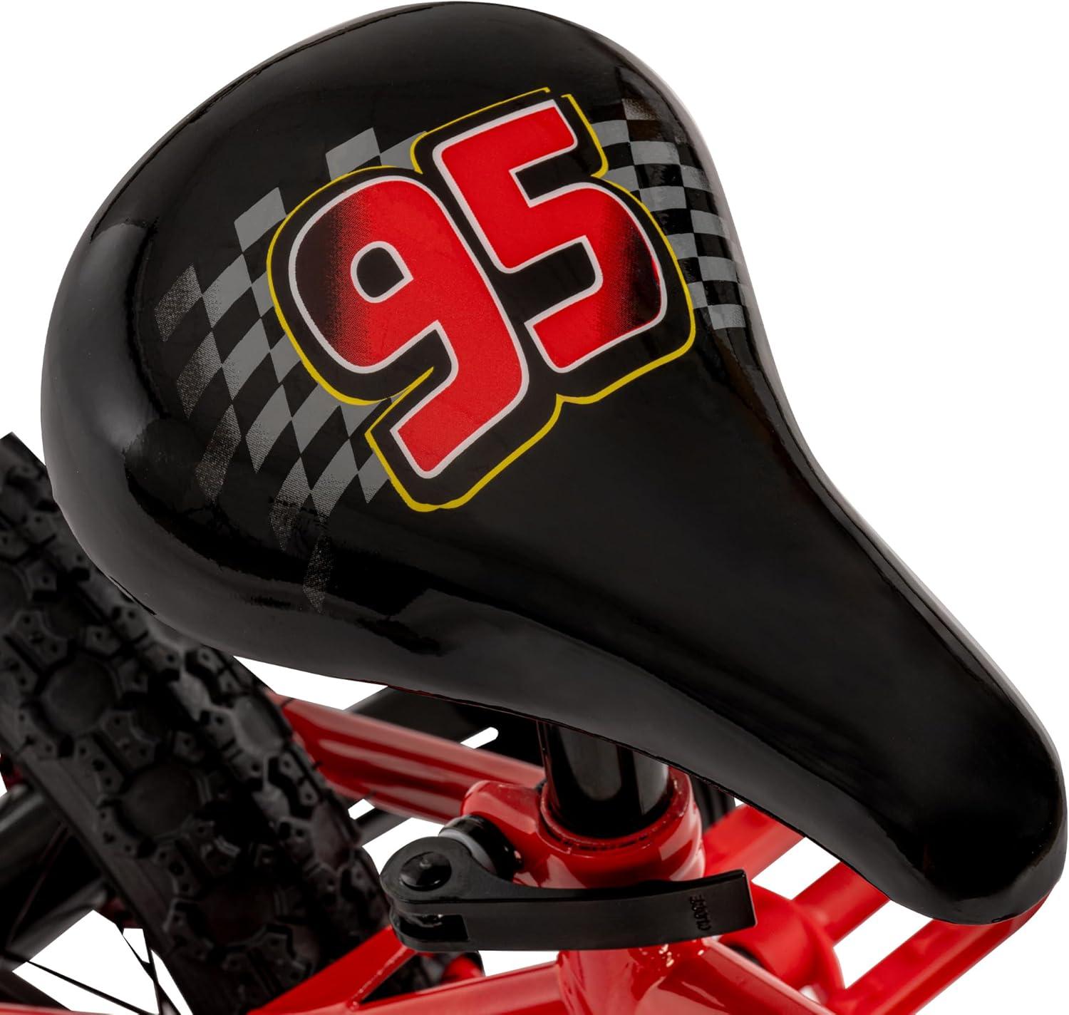 imageHuffy Disney and Marvel 1216 Inch Boys Bike for Kids Multiple Color Options and Designs Available Ideal for Ages 3 Years Old Removable Training Wheels Adjustable Seat Simple Coaster Brake12 Lightning Mcqueen  Red