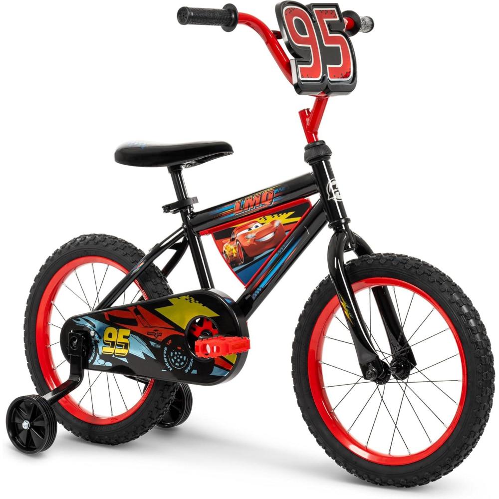 Huffy Disney and Marvel 12/16 Inch Boy's Bike for Kids, Multiple Color Options and Designs Available, Ideal for Ages 3+ Years Old, Removable Training Wheels, Adjustable Seat, Simple Coaster Brake(16" Lightning Mcqueen | Black)