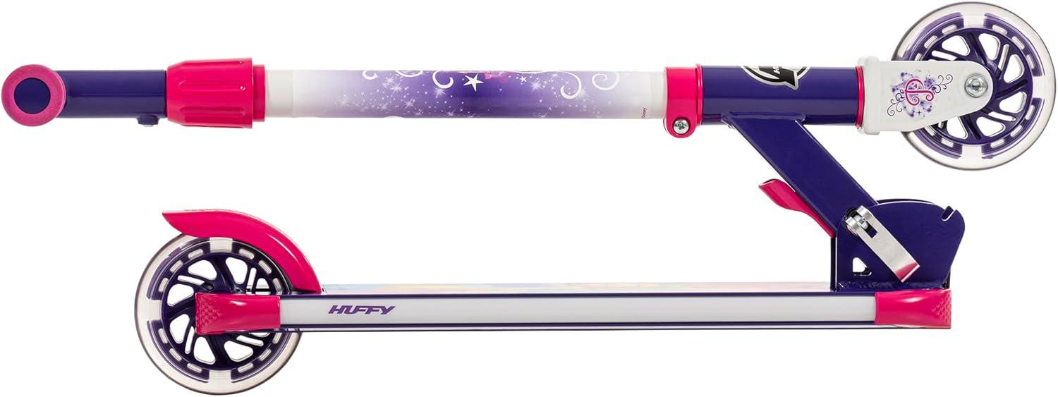 Huffy Disney and Marvel Light Up Kids' Inline Scooters, Multiple Color Options, LED Lights, Ages 5+ Years Old, Adjustable Handlebar, Durable Steel Frame, Foldable, Girls/Boys, 2-Wheels(Purple Princess)