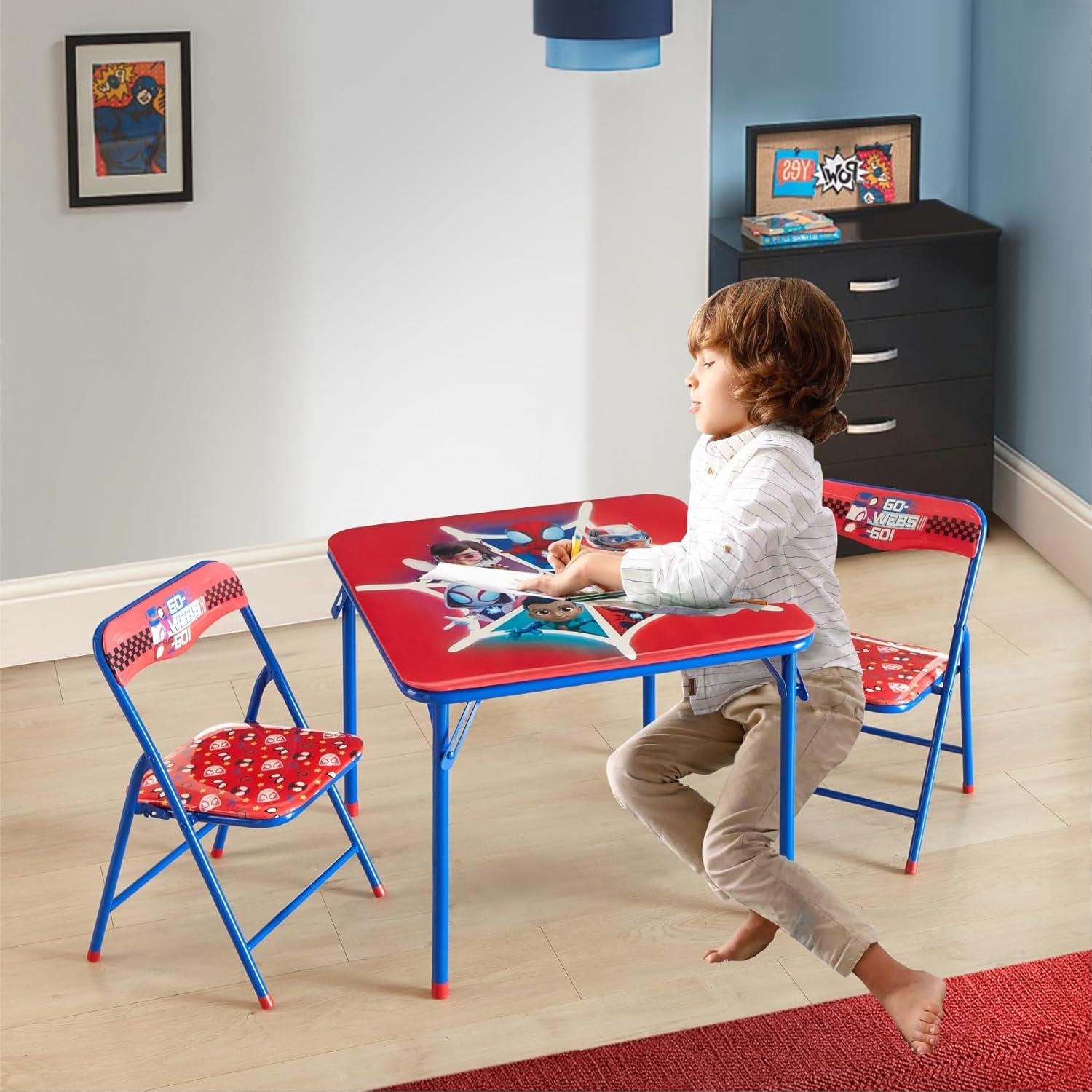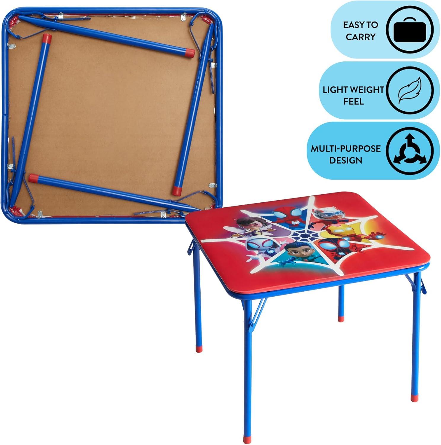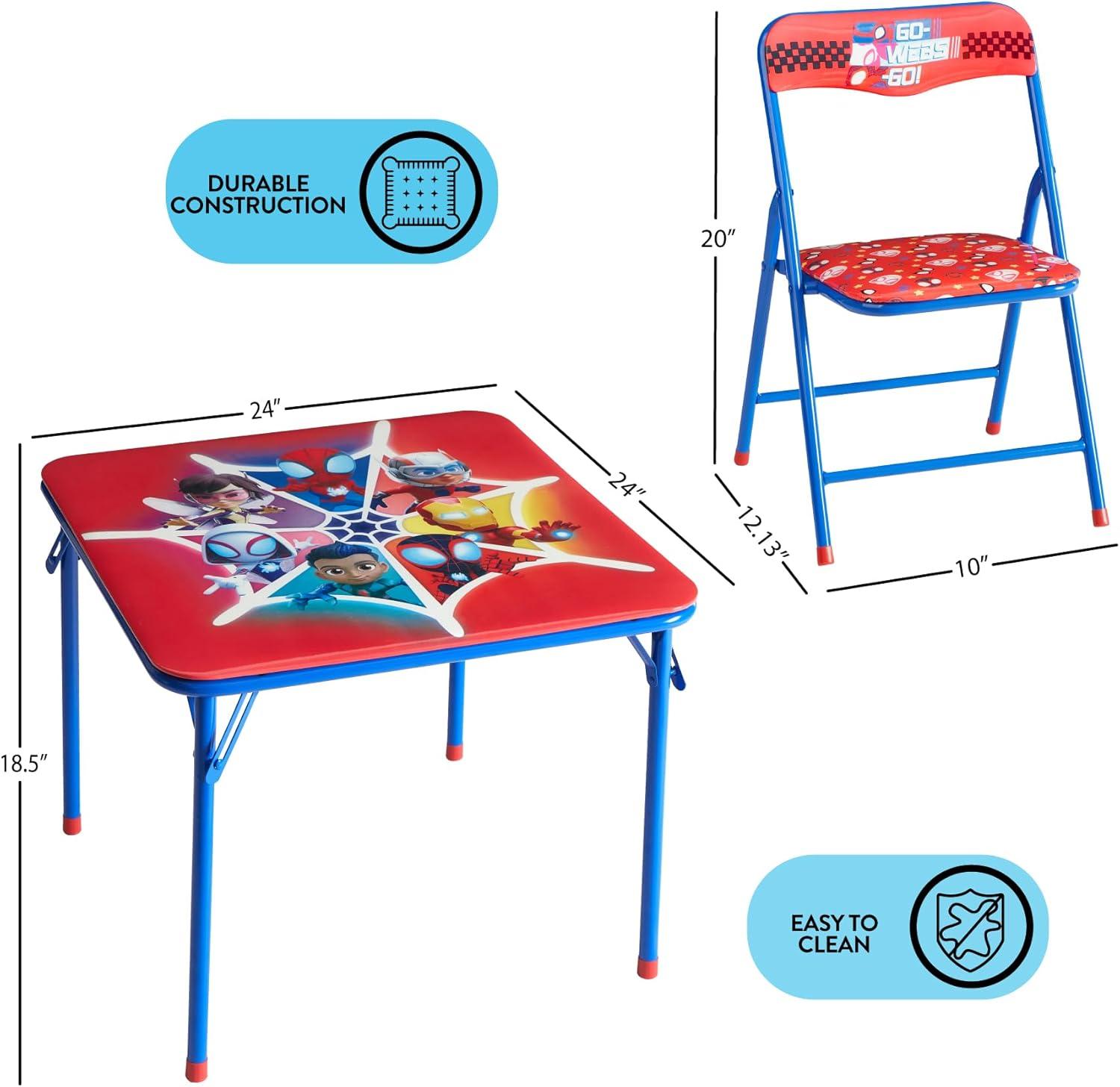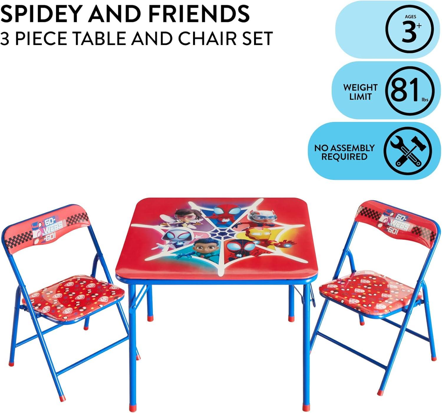 Your child will love reading, drawing and doing homework around the house at the Spider-Man 3 PC Square Table and Chair Set. Featuring Spider-Man designs, this table is sure to become a favorite with your little one. The 3 PC Square Table and Chair set includes 2 folding chairs and a square table. The table is easy care with regular damp cloth wipe down. Ideal for ages 3-9. 81 lb. weight capacity.