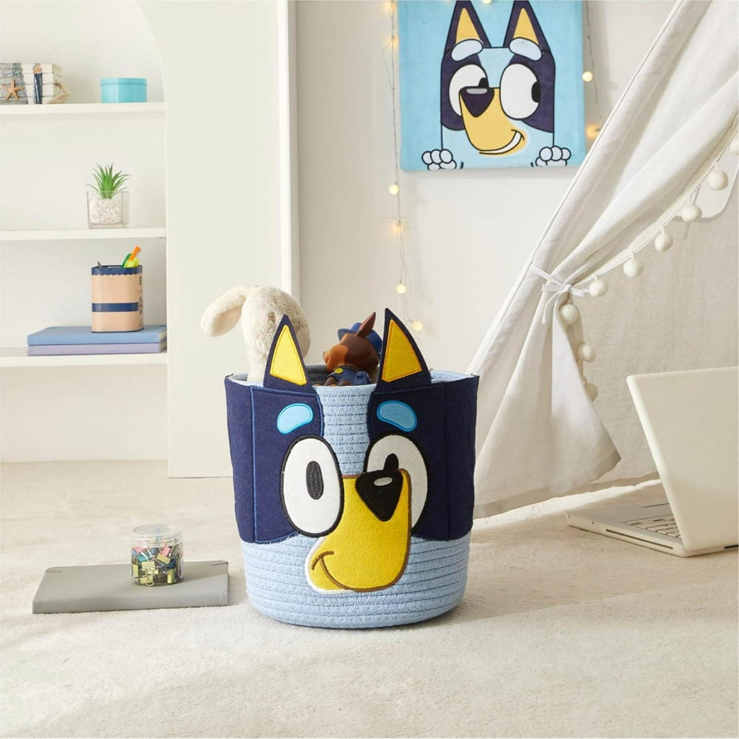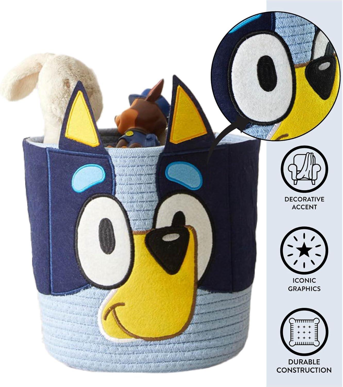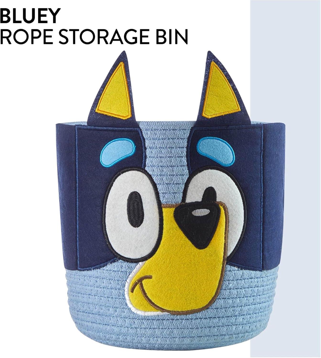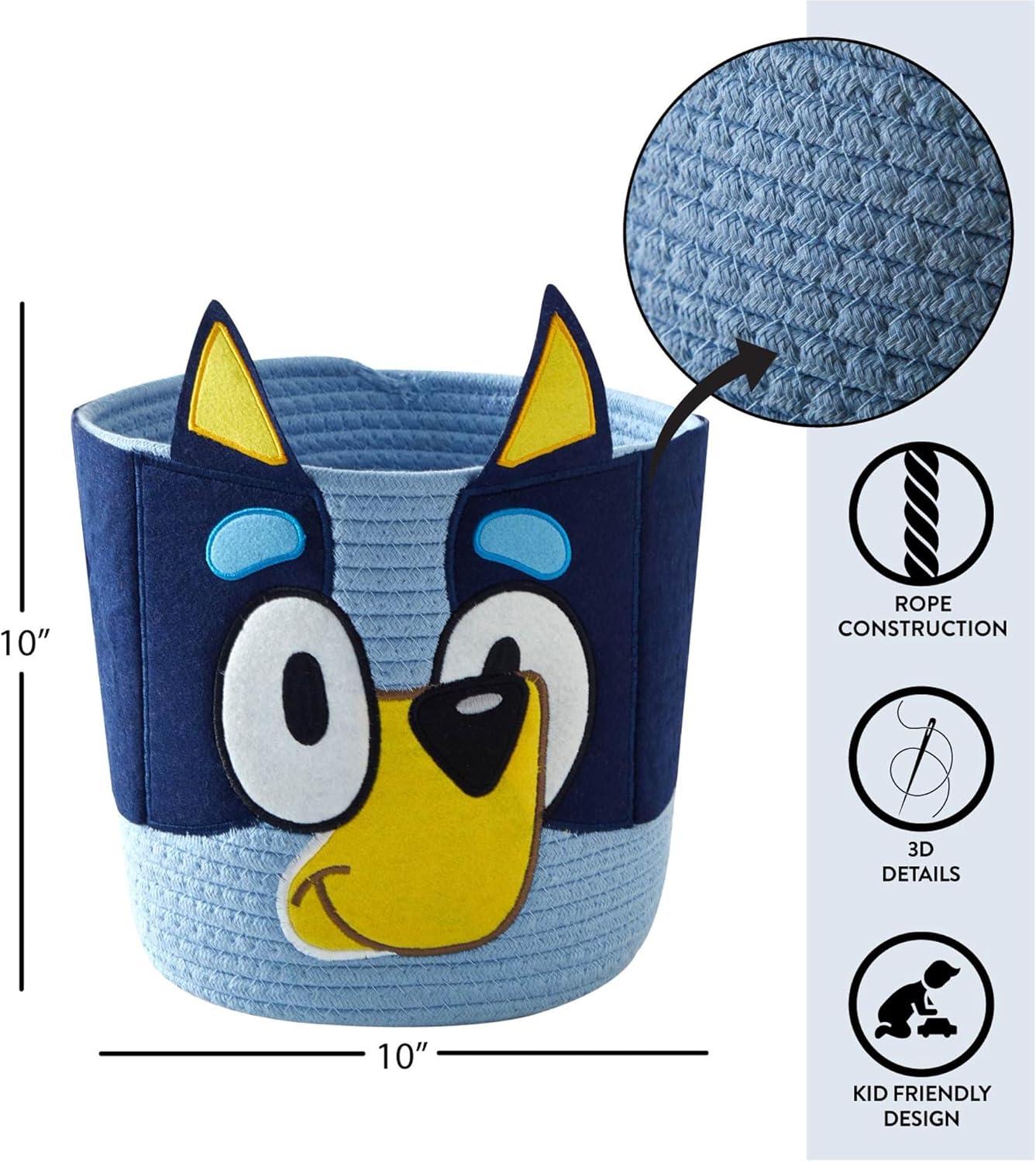 Idea Nuova Marvel Spiderman Rope Storage Basket – 10'' x 10'' Figural Organizer Bin, Soft & Durable for Kids Room, Toys, Laundry or Nursery Décor(Bluey)