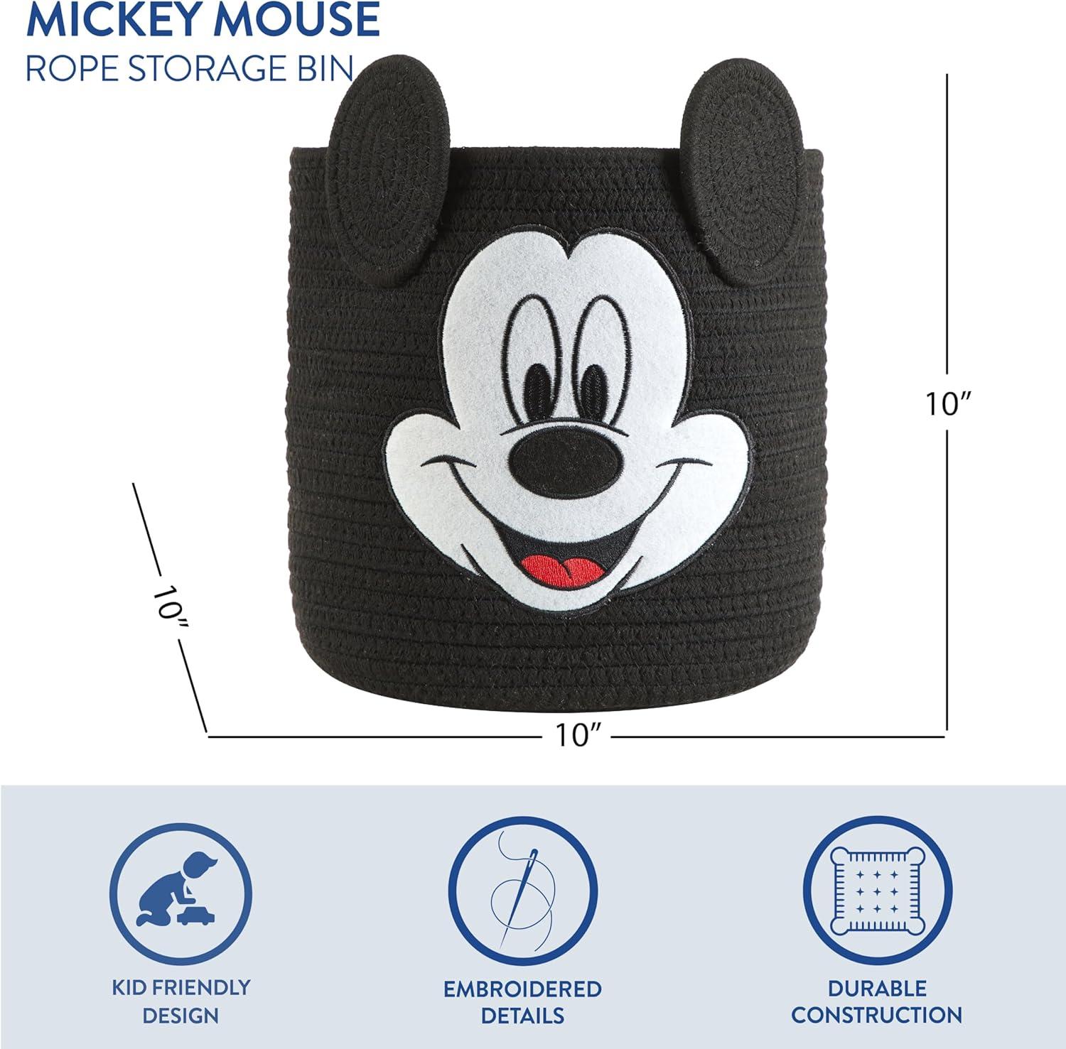 Idea Nuova Marvel Spiderman Rope Storage Basket – 10'' x 10'' Figural Organizer Bin, Soft & Durable for Kids Room, Toys, Laundry or Nursery Décor(Mickey Mouse)