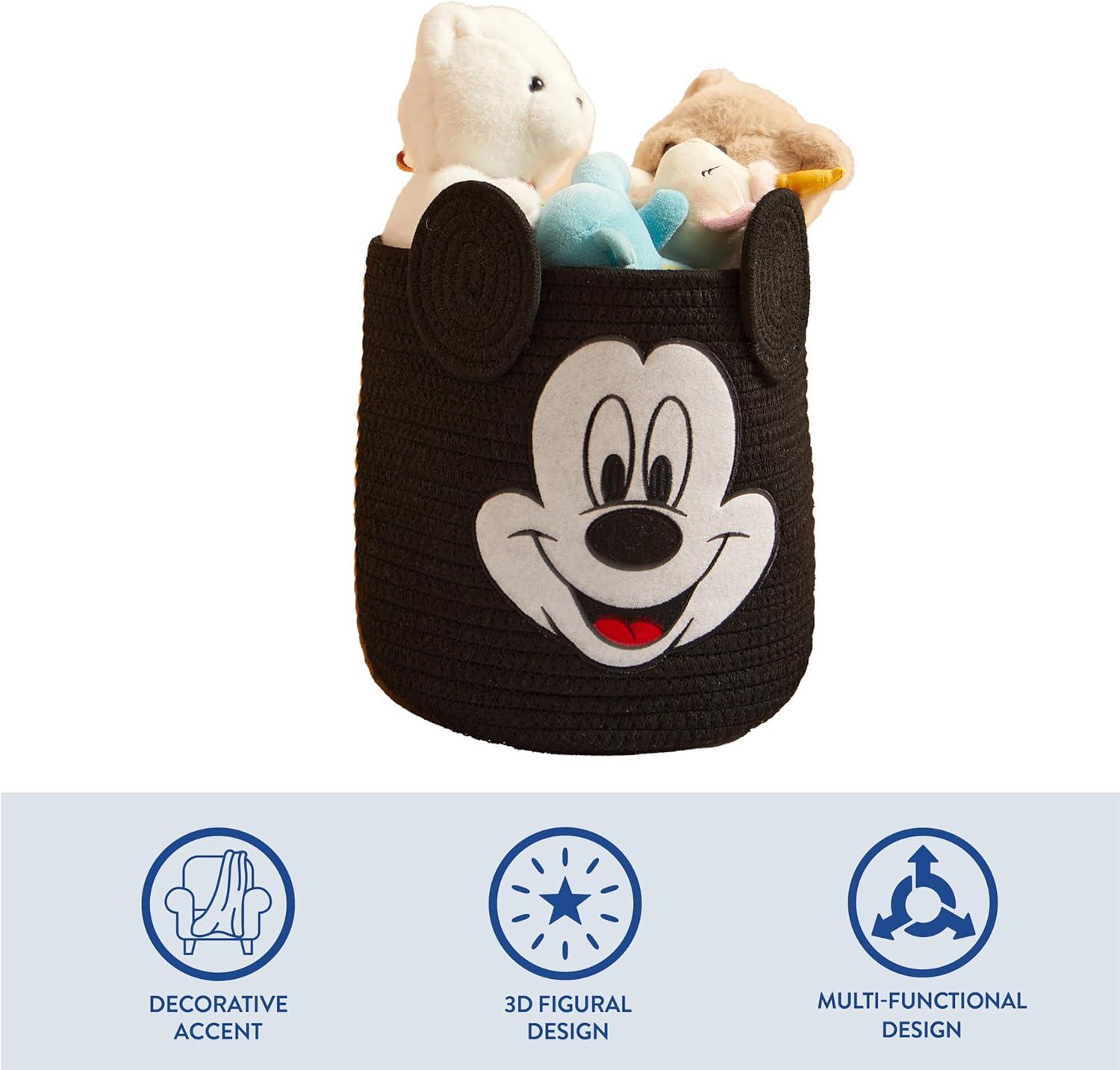 Idea Nuova Marvel Spiderman Rope Storage Basket – 10” x 10” Figural Organizer Bin, Soft & Durable for Kids Room, Toys, Laundry or Nursery Décor(Mickey Mouse)