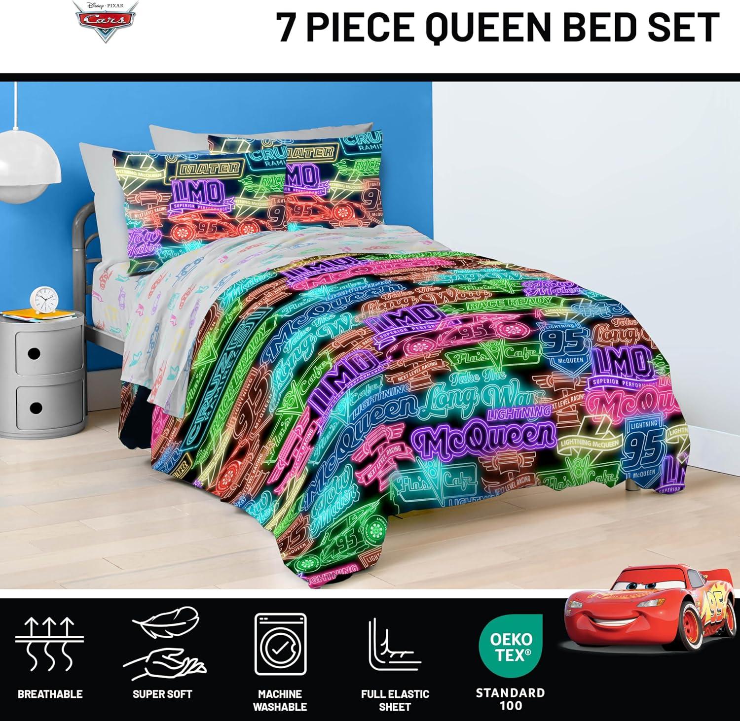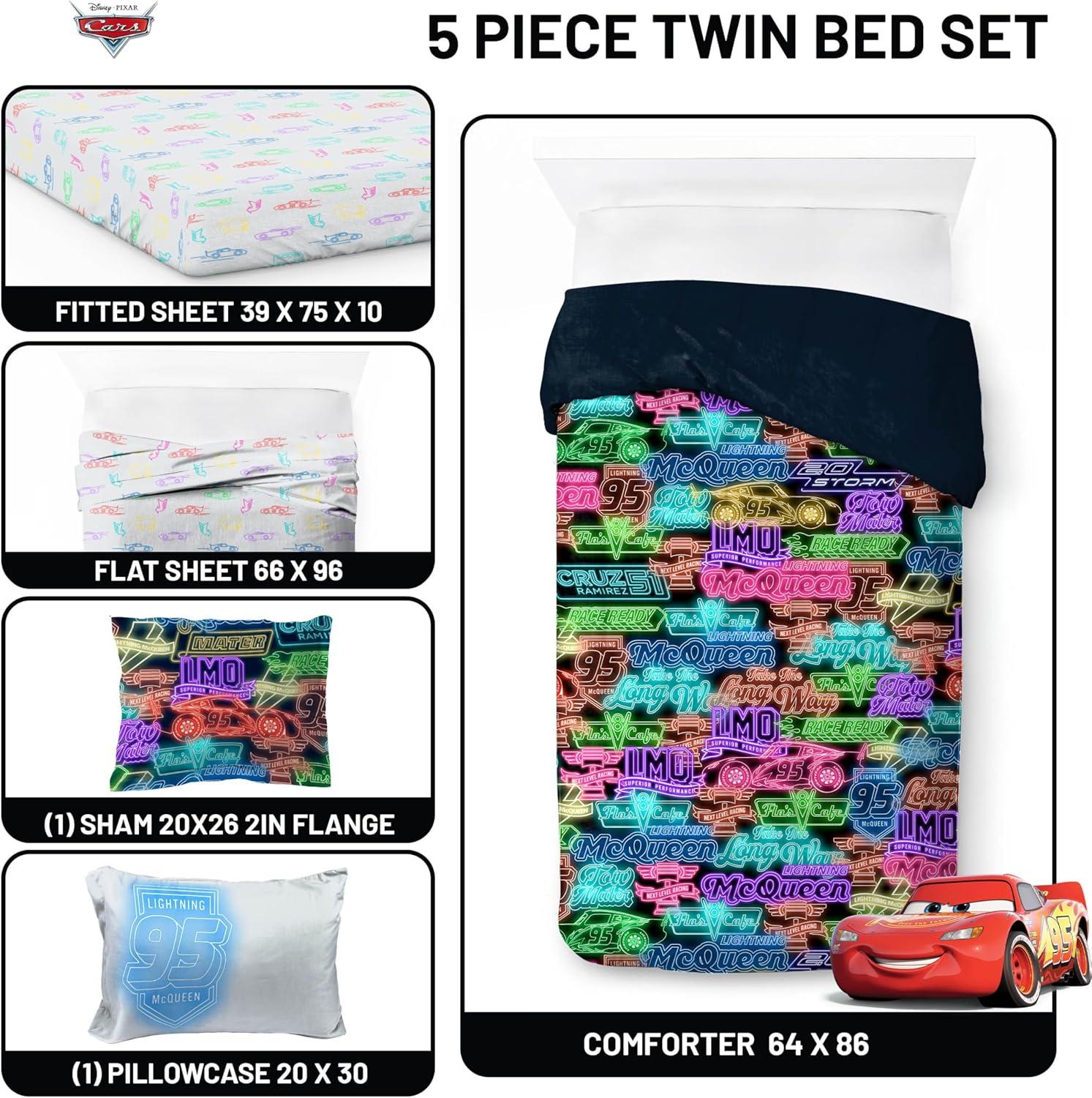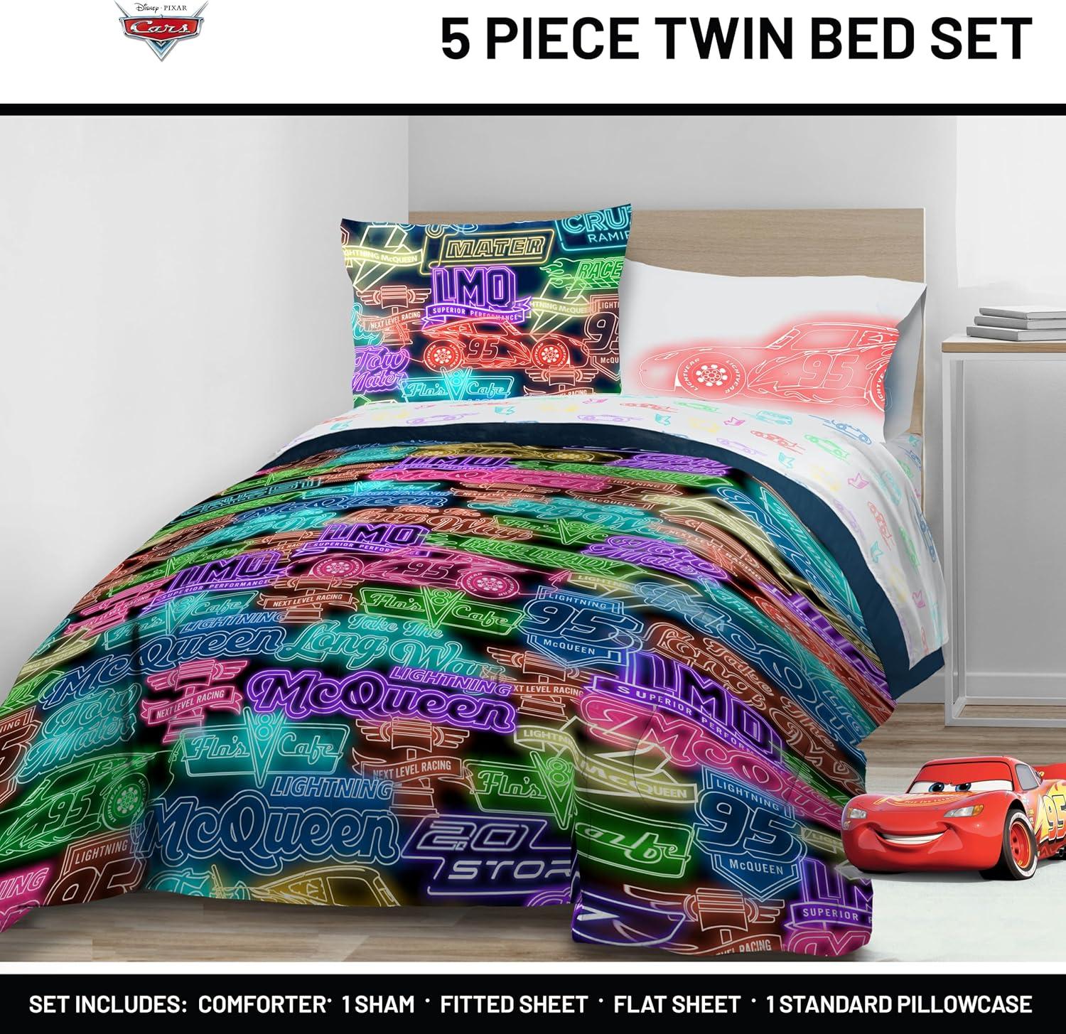 Jay Franco Comforter Set Includes Sheets and Pillow Covers – Soft and Cozy Bed Set for Stylish Room Decor, Blue – The Fantastic Four, 5 Piece Twin Size Bedding(Black – Cars)