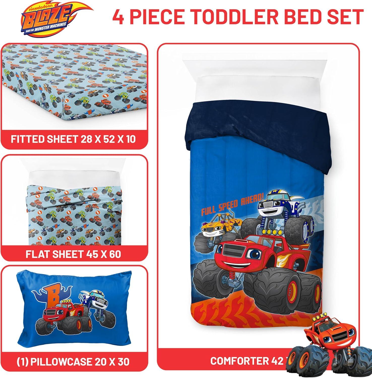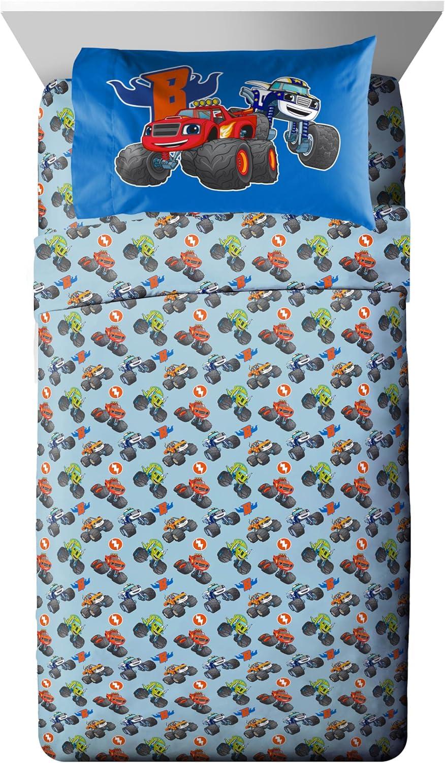 Jay Franco Comforter Set Includes Sheets and Pillow Covers – Soft and Cozy Bed Set for Stylish Room Decor, Blue – The Fantastic Four, 5 Piece Twin Size Bedding(Blue – Blaze & the Monster Machines)