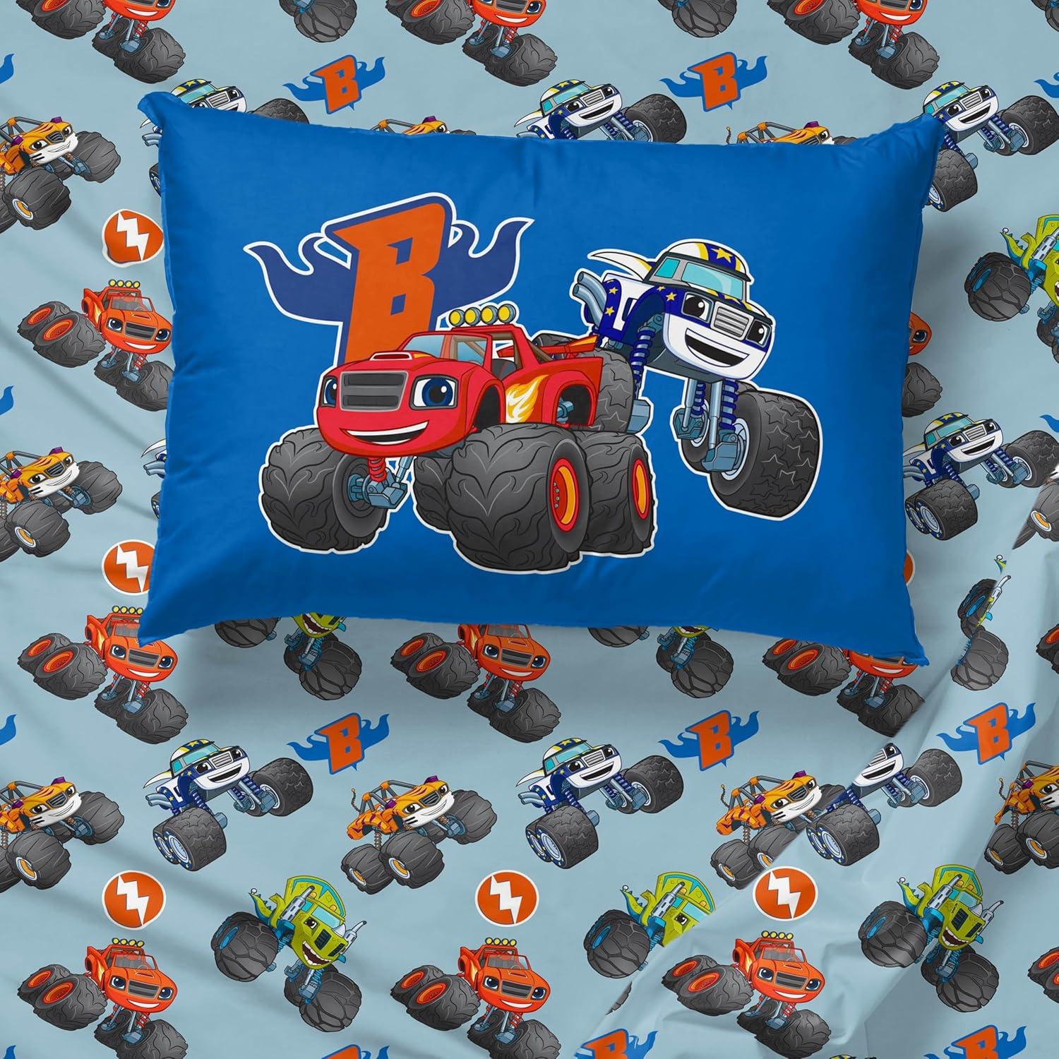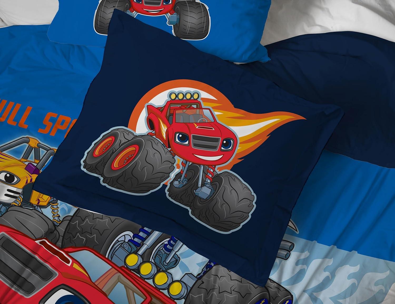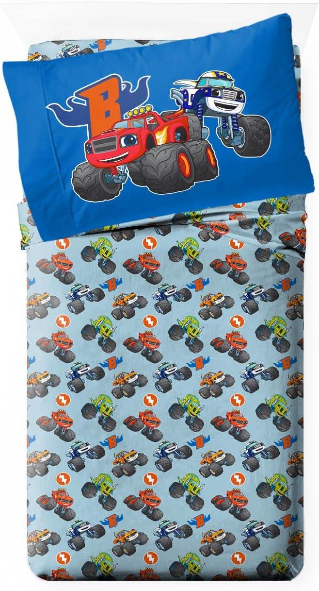Jay Franco Comforter Set Includes Sheets and Pillow Covers - Soft and Cozy Bed Set for Stylish Room Decor, Blue - The Fantastic Four, 5 Piece Twin Size Bedding(Blue - Blaze & the Monster Machines)