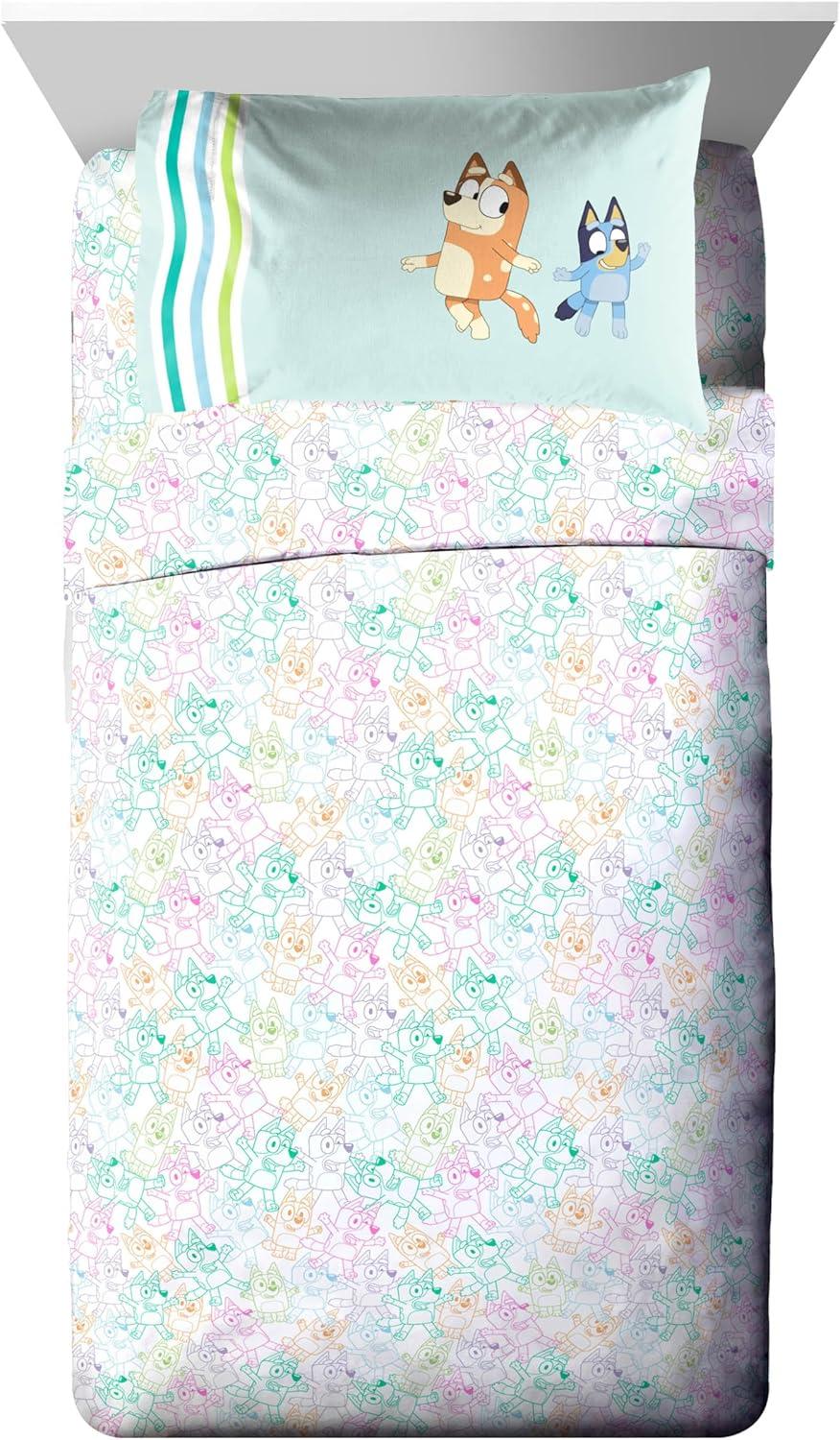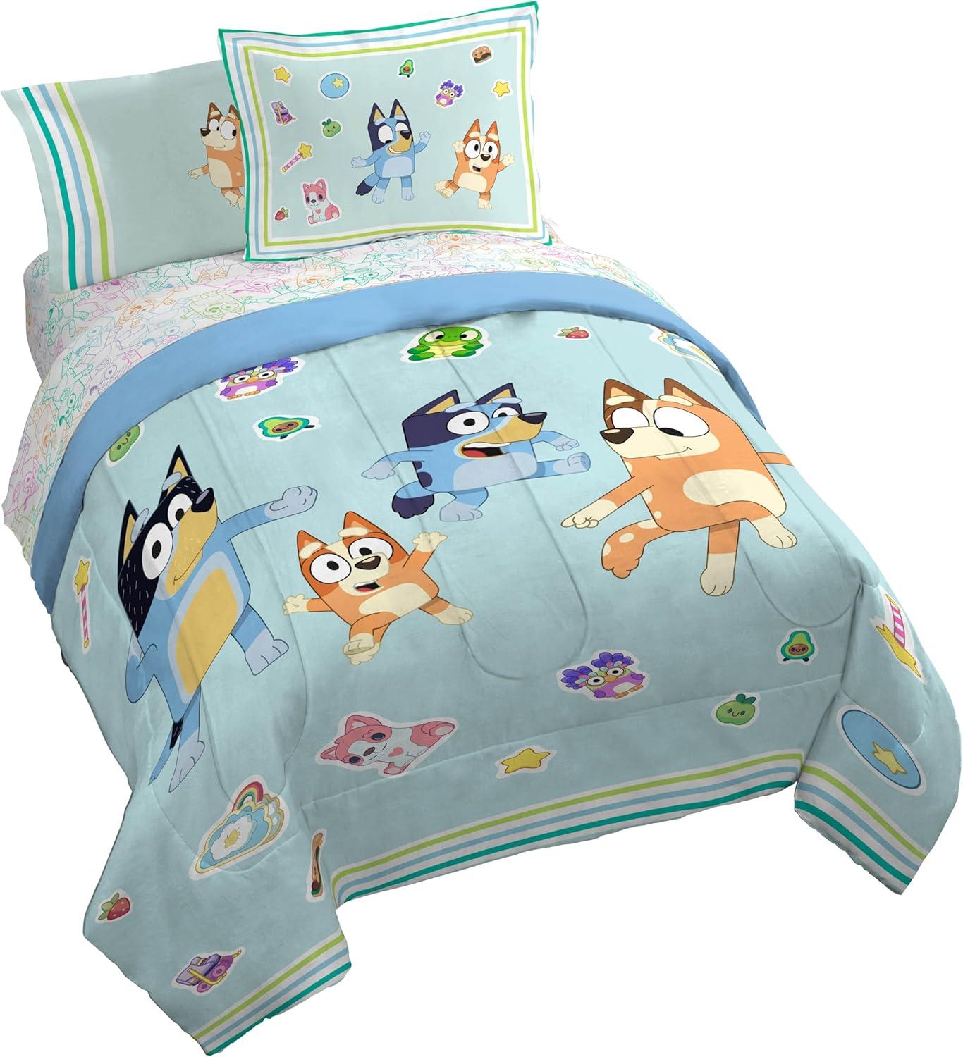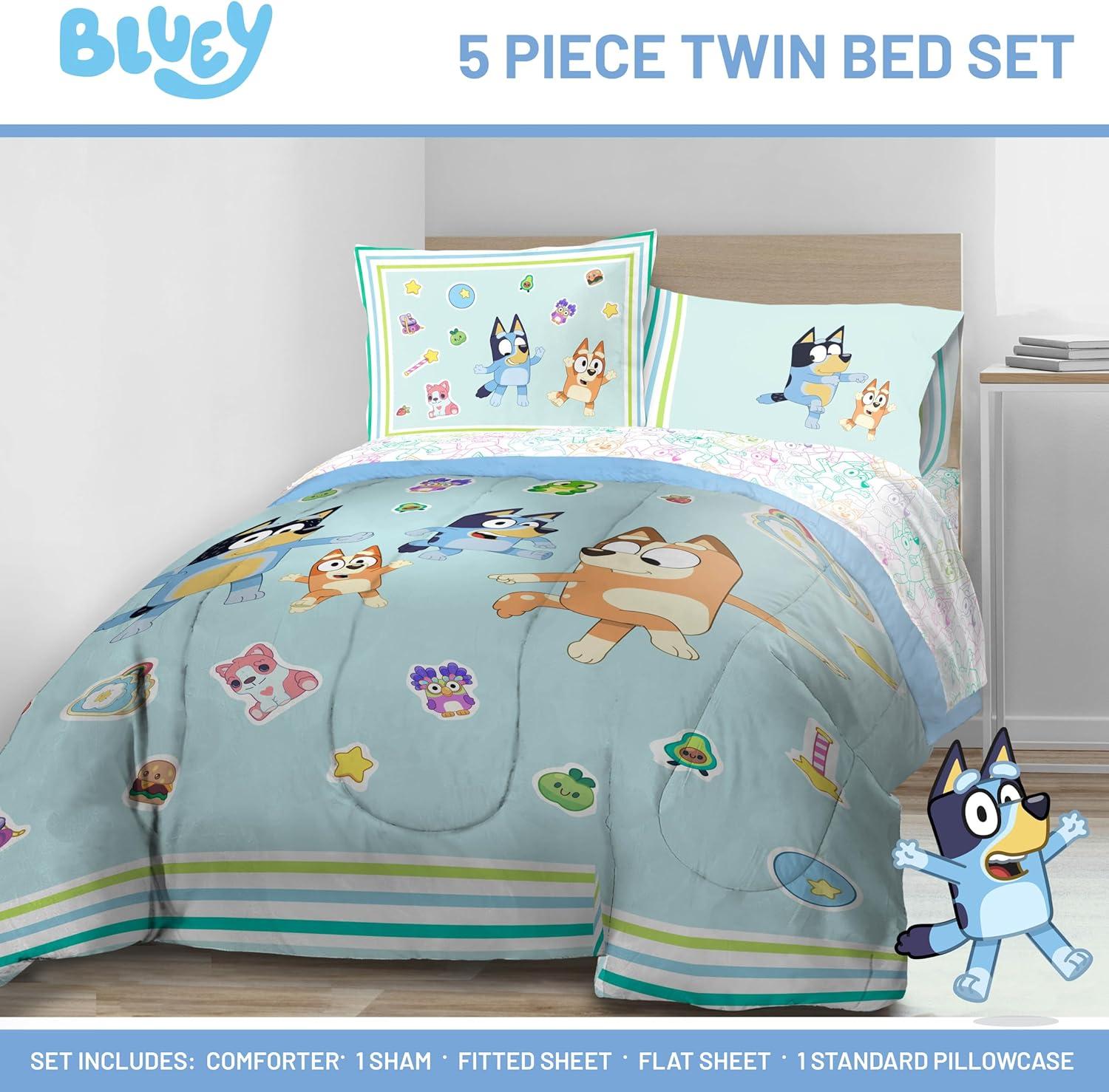 Jay Franco Comforter Set Includes Sheets and Pillow Covers – Soft and Cozy Bed Set for Stylish Room Decor, Blue – The Fantastic Four, 5 Piece Twin Size Bedding(Blue – Bluey)