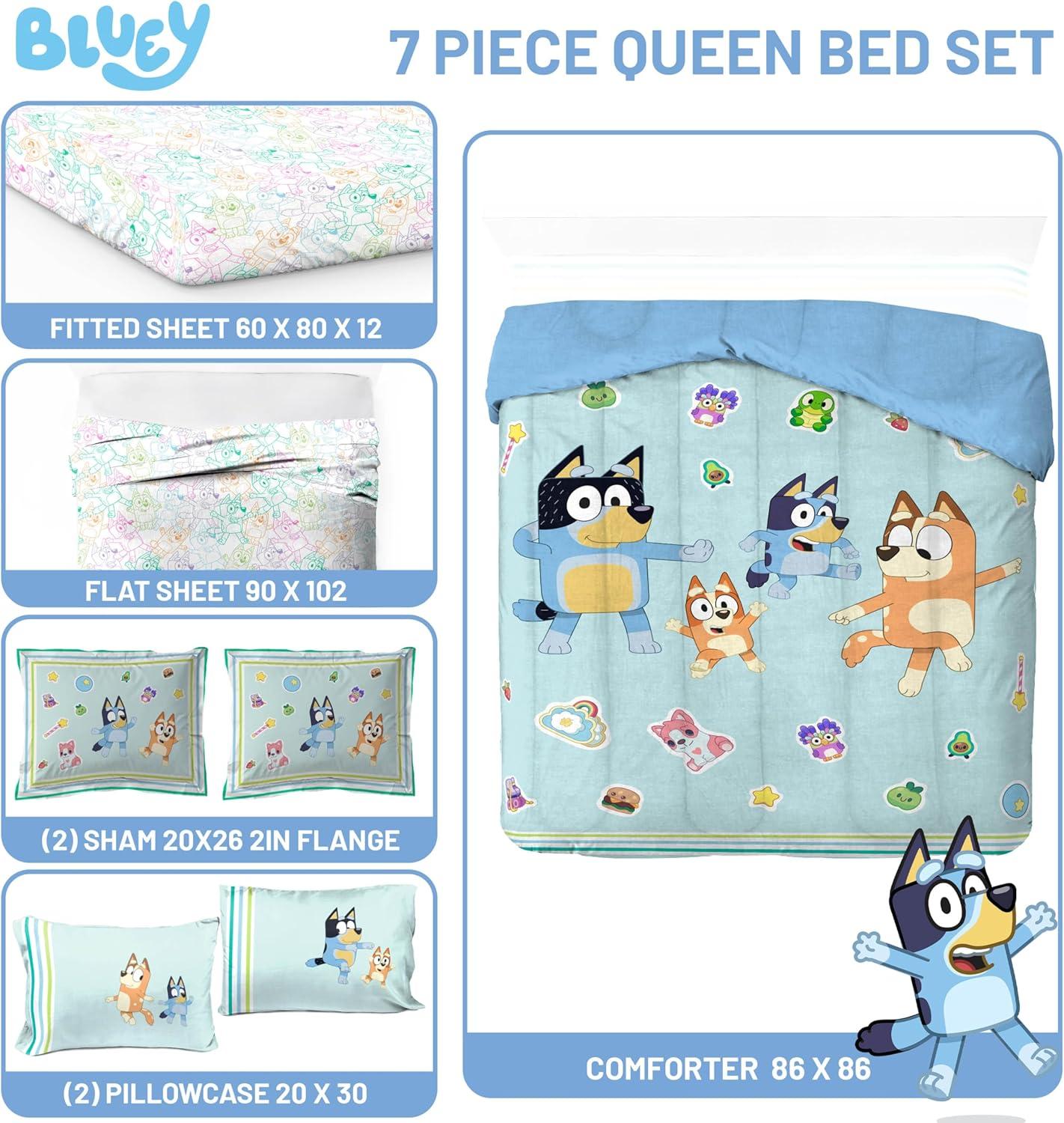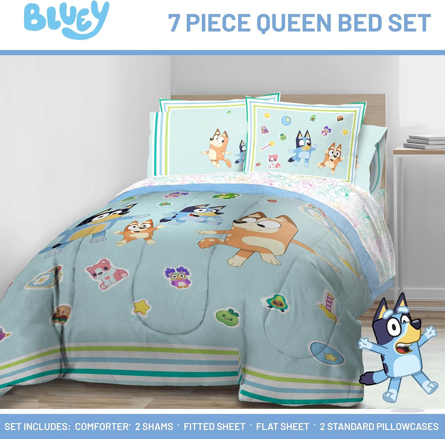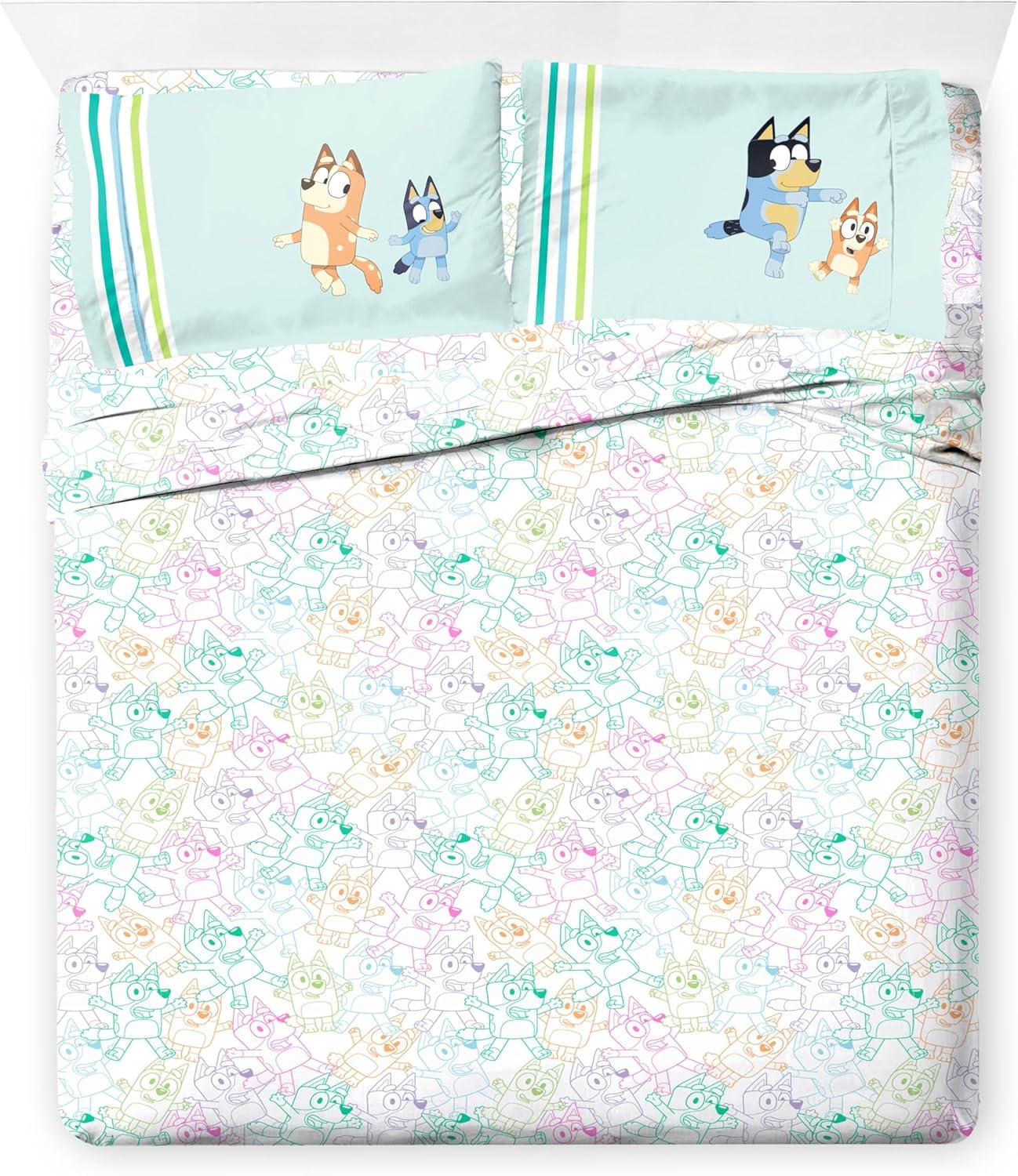 Jay Franco Comforter Set Includes Sheets and Pillow Covers – Soft and Cozy Bed Set for Stylish Room Decor, Blue – The Fantastic Four, 5 Piece Twin Size Bedding(Blue – Bluey)