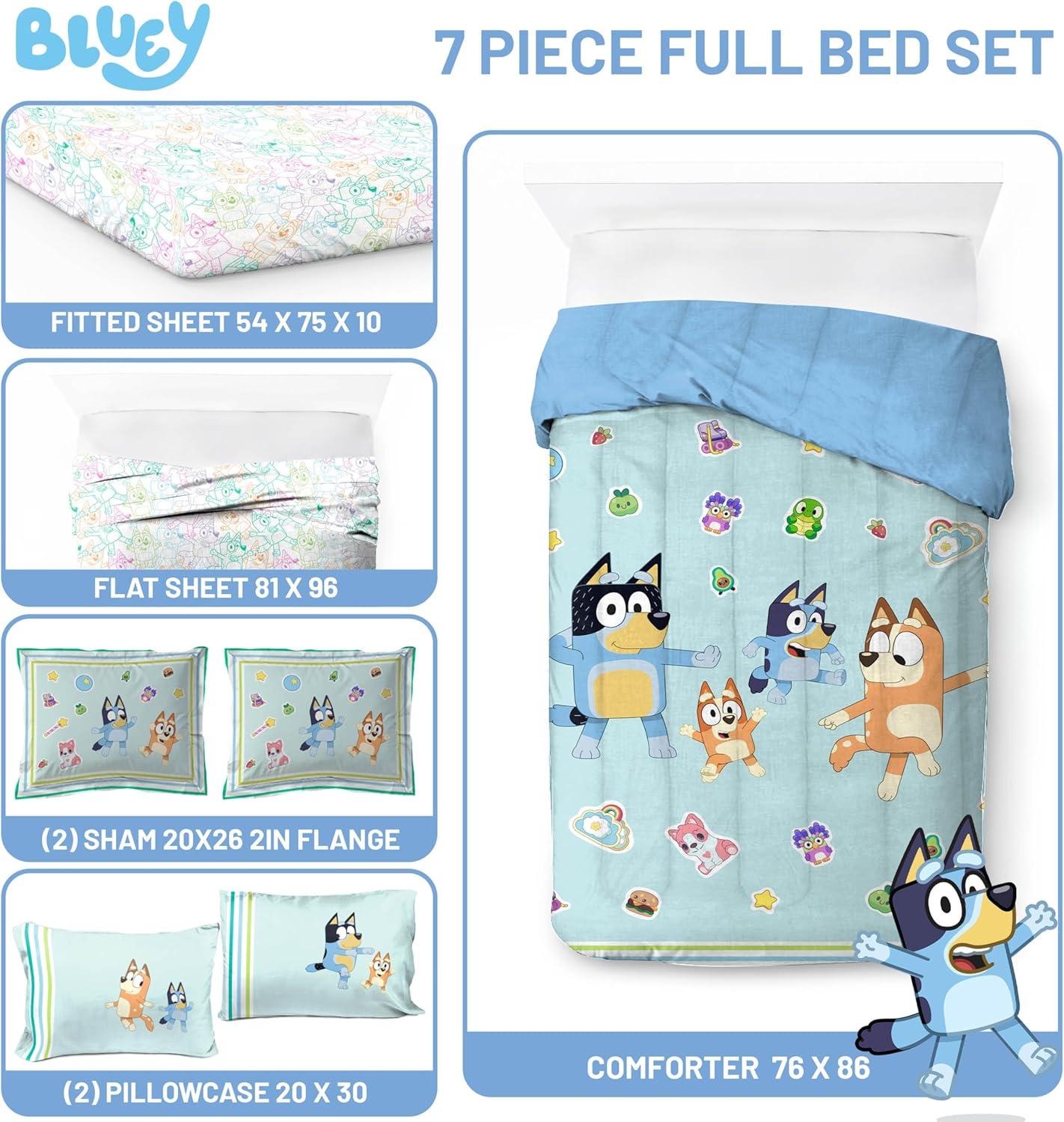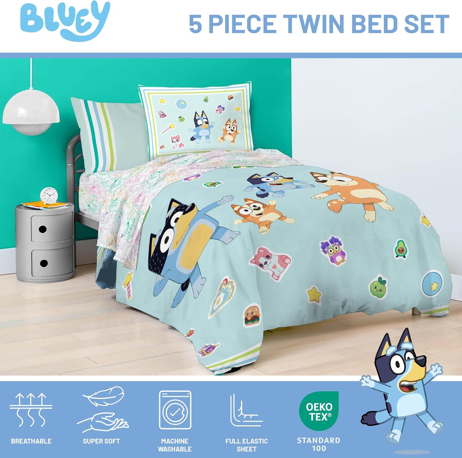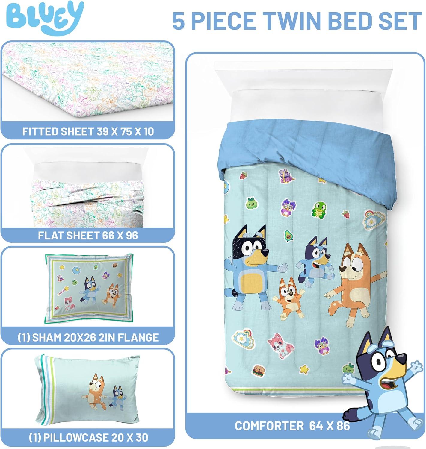 Jay Franco Comforter Set Includes Sheets and Pillow Covers - Soft and Cozy Bed Set for Stylish Room Decor, Blue - The Fantastic Four, 5 Piece Twin Size Bedding(Blue - Bluey)