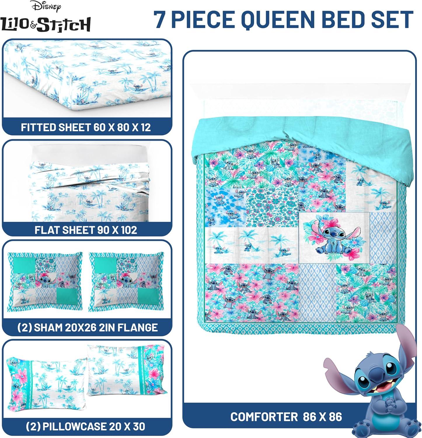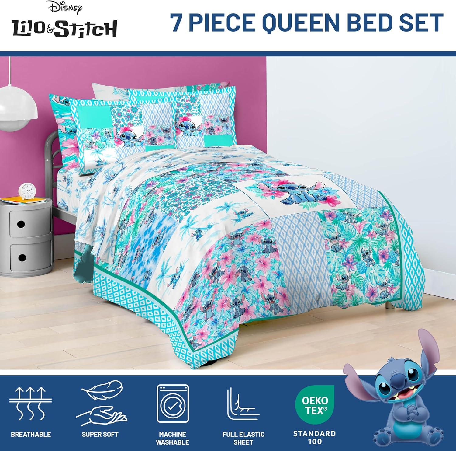 Jay Franco Comforter Set Includes Sheets and Pillow Covers – Soft and Cozy Bed Set for Stylish Room Decor, Blue – The Fantastic Four, 5 Piece Twin Size Bedding(Multi – Lilo and Stitch 02)