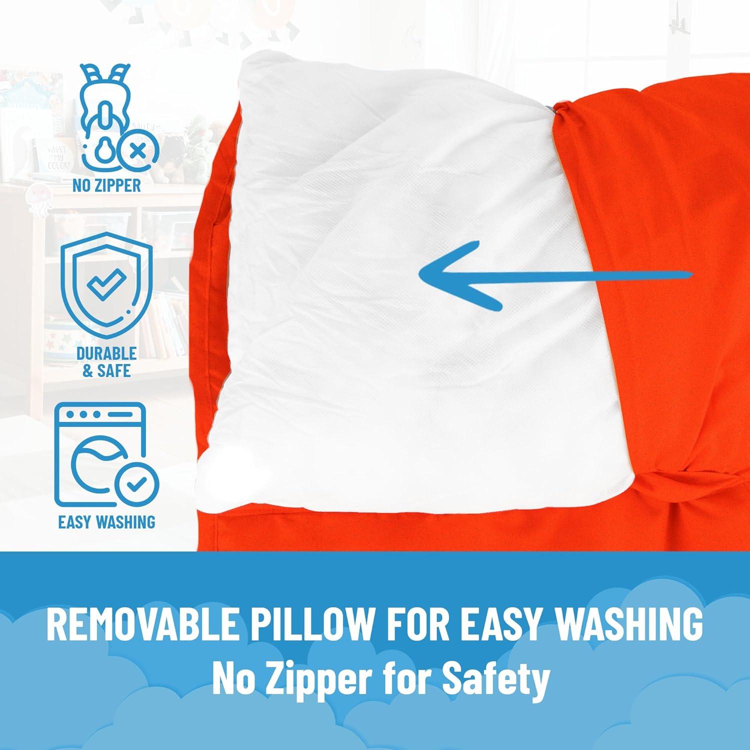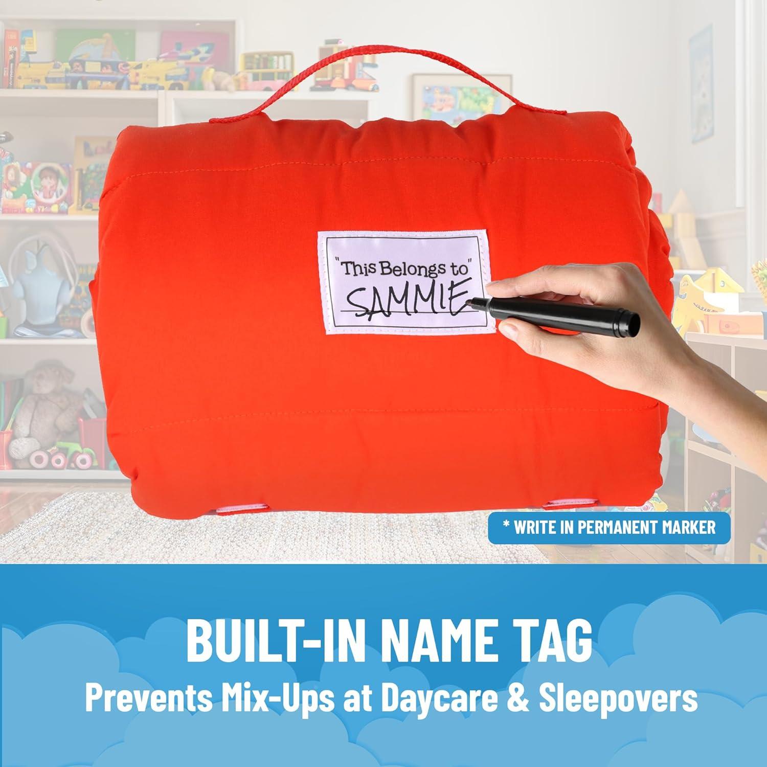 ALL-IN-ONE: Includes 46″ x 20″ sleeping surface with built-in 20″ x 9.5″ pillow and 35″ x 34″ blanket—ideal size for toddlers and young children.